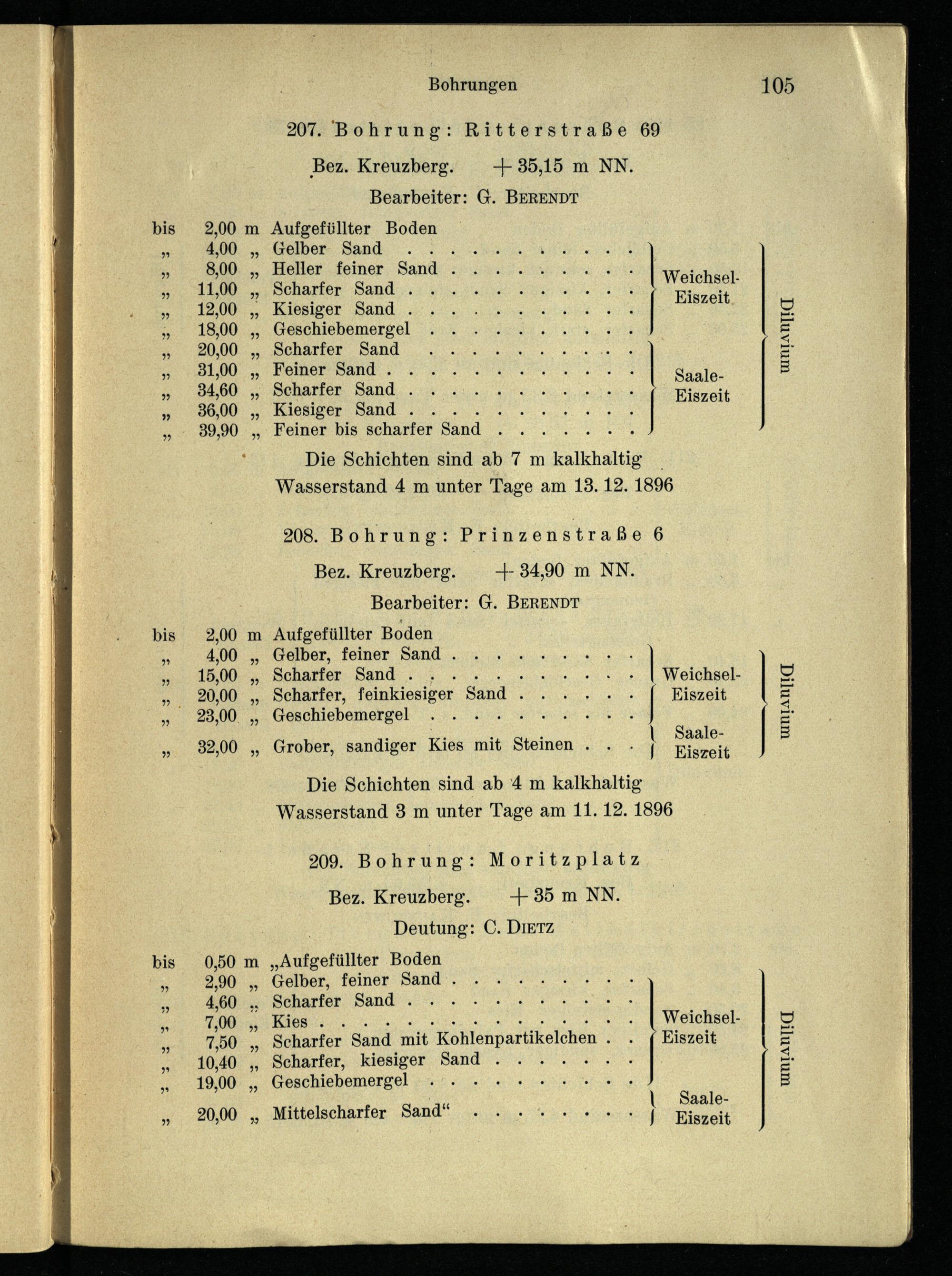 Die Schichten sind ab 4 m kalkhaltig Wasserstand 3 m unter Tage am 11. 12. 1896