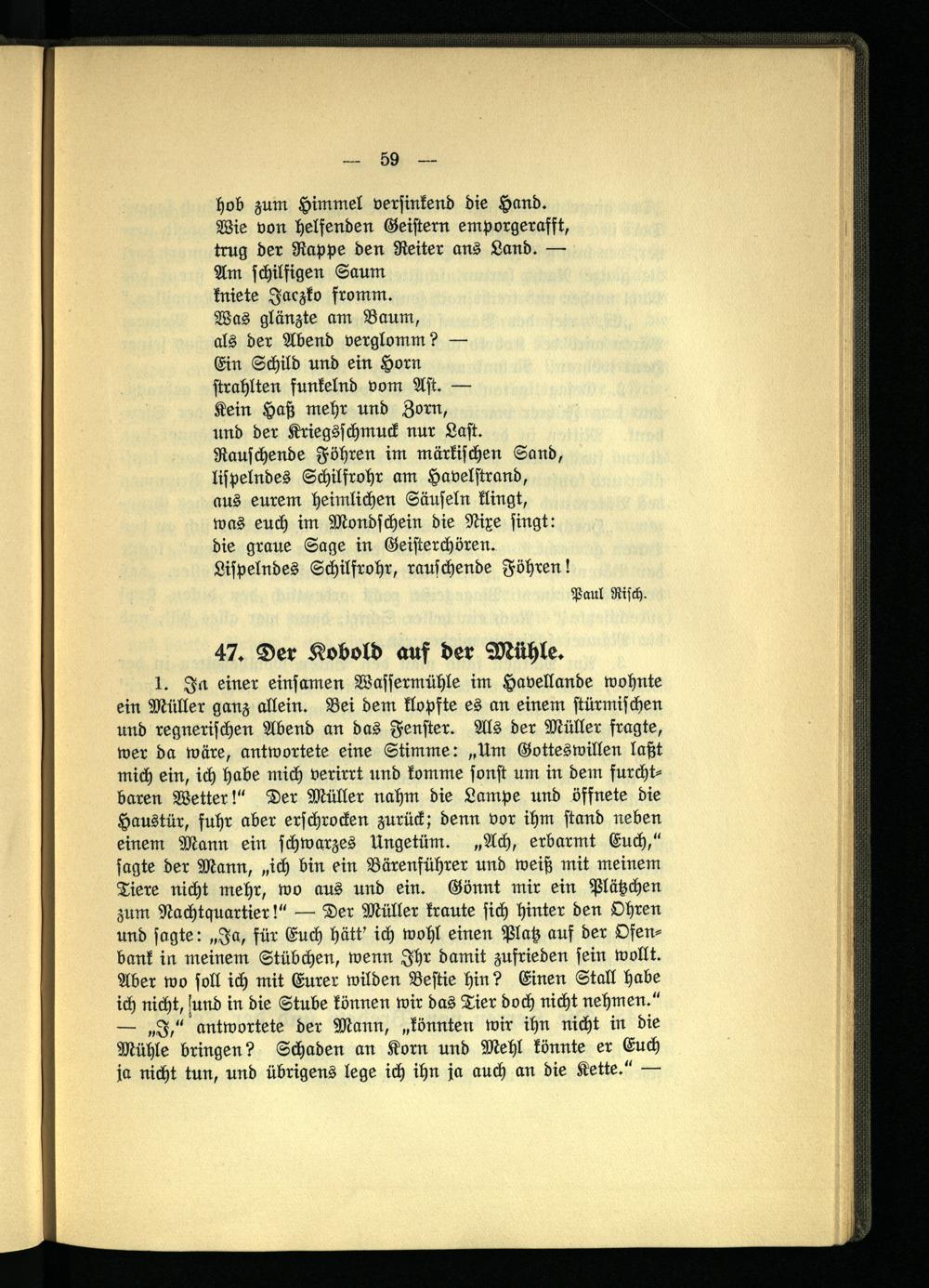 Rauschende Föhren im märkischen Sand, lispelndes Schilfrohr am Havelstrand, aus eurem heimlichen Säuseln klingt, was euch im Mondschein die Nixe singt: die graue Sage in Geisterchören.