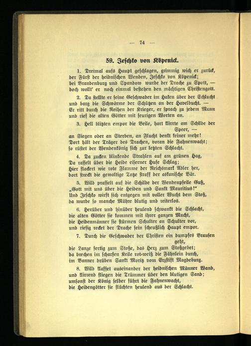 1. Dreimal aufs Haupt geschlagen, grimmig wich er zurück, der Fürst der heidnischen Wenden, Jeschko von Köpenick;
