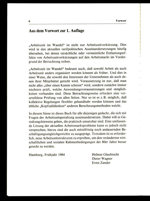 In diesem Sinne ist dieses Buch für alle diejenigen gedacht, die sich mit Fragen der Arbeitszeitgestaltung auseinandersetzen. Dabei will es Gestaltungshinweise geben, die praktisch umsetzbar sind. Eine umfassende Lösung der aktuellen Arbeitsmarktprobleme kann es jedoch nicht versprechen; hierzu sind die auch mittelfristig noch andauernden Beschäftigungsungleichgewichte zu ausgeprägt. Trotzdem ist es erforderlich, neue Arbeitszeitstrukturen zu erproben, um den veränderten wirtschaftlichen und sozialen Rahmenbedingungen der 80er Jahre besser gerecht zu werden.