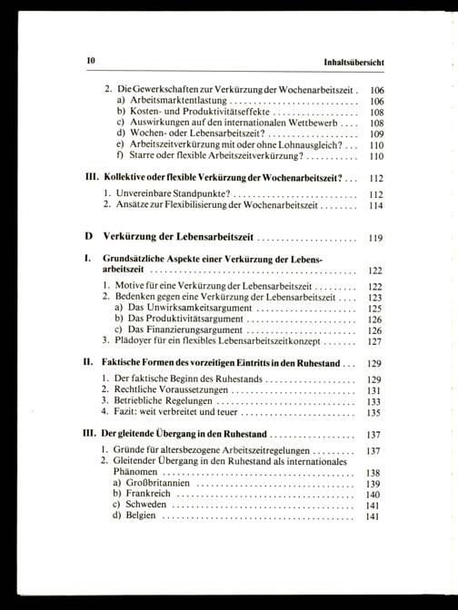 1. Motive für eine Verkürzung der Lebensarbeitszeit......... 2. Bedenken gegen eine Verkürzung der Lebensarbeitszeit.... a) Das Unwirksamkeitsargument..................0.0.. b) Das Produktivitätsargument....................... c) Das Finanzierungsargument............0.0000.000000 3. Plädoyer für ein flexibles Lebensarbeitszeitkonzept.......