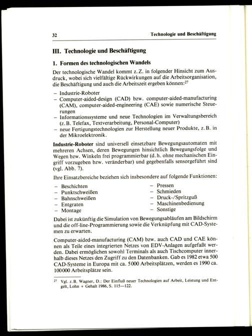 27 Vgl. z.B. Wagner, D.: Der Einfluß neuer Technologien auf Arbeit, Leistung und Entgelt, Lohn+ Gehalt 1986, S. 115—122.