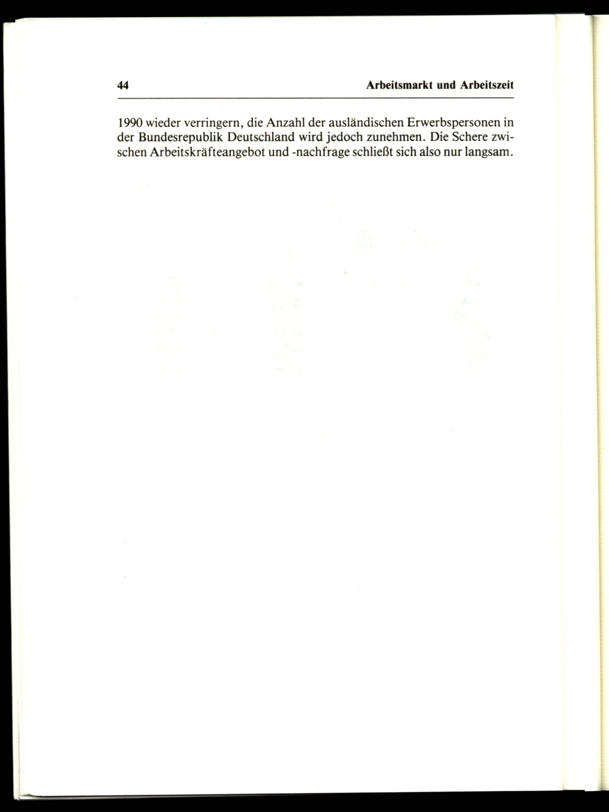 1990 wieder verringern, die Anzahl der ausländischen Erwerbspersonen in der Bundesrepublik Deutschland wird jedoch zunehmen. Die Schere zwischen Arbeitskräfteangebot und-nachfrage schließt sich also nur langsam.