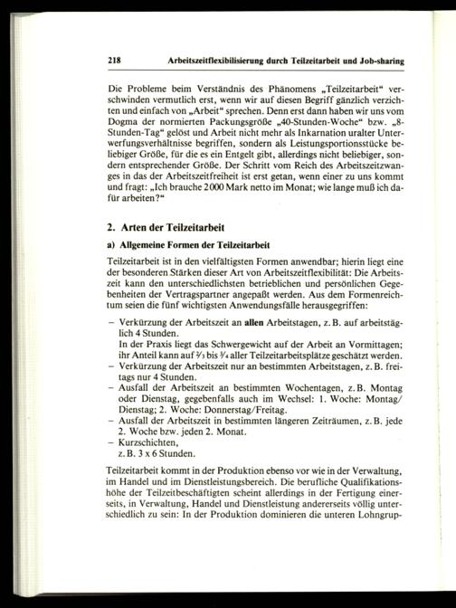 218 Arbeitszeitflexibilisierung durch Teilzeitarbeit und Job-sharing