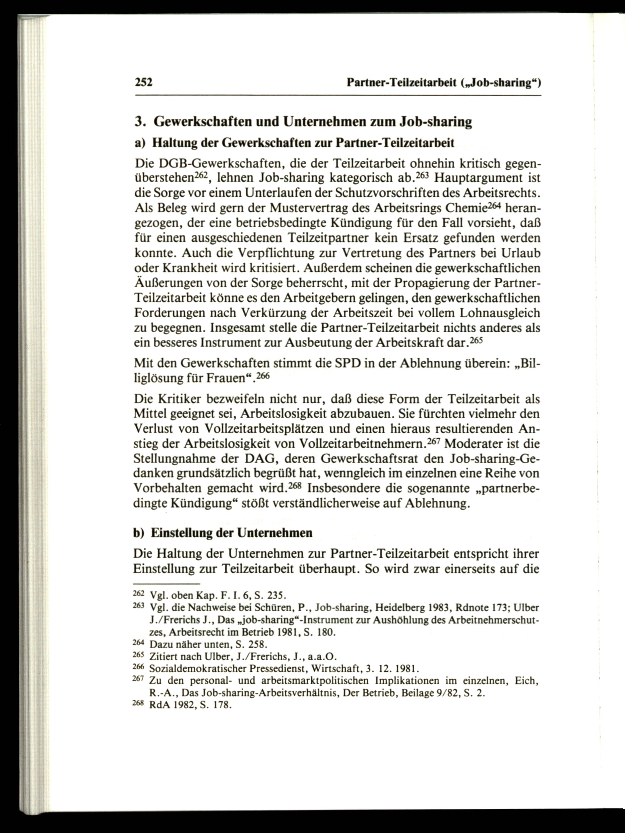 267 Zu den personal- und arbeitsmarktpolitischen Implikationen im einzelnen, Eich, R.-A., Das Job-sharing-Arbeitsverhältnis, Der Betrieb, Beilage 9/82, S. 2.