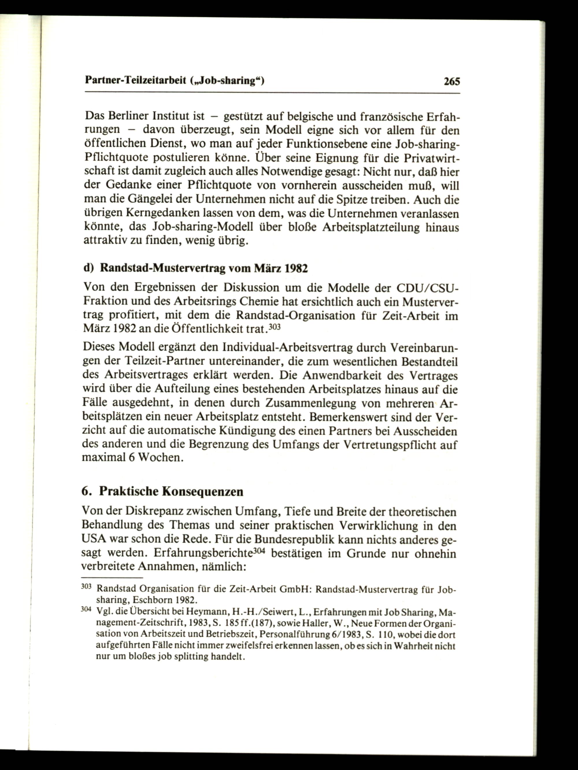 303 Randstad Organisation für die Zeit-Arbeit GmbH: Randstad-Mustervertrag für Jobsharing, Eschborn 1982.