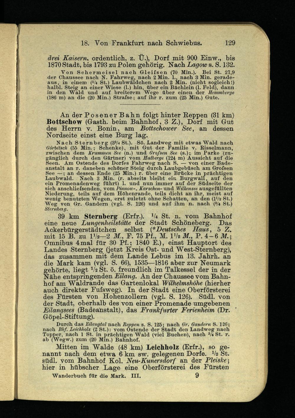 drei Kaisern , ordentlich, z. Ü.), Dorf mit 900 Einw., bis 1870 Stadt, bis 1793 zu Polen gehörig. Nach Lagow s. S. 132.