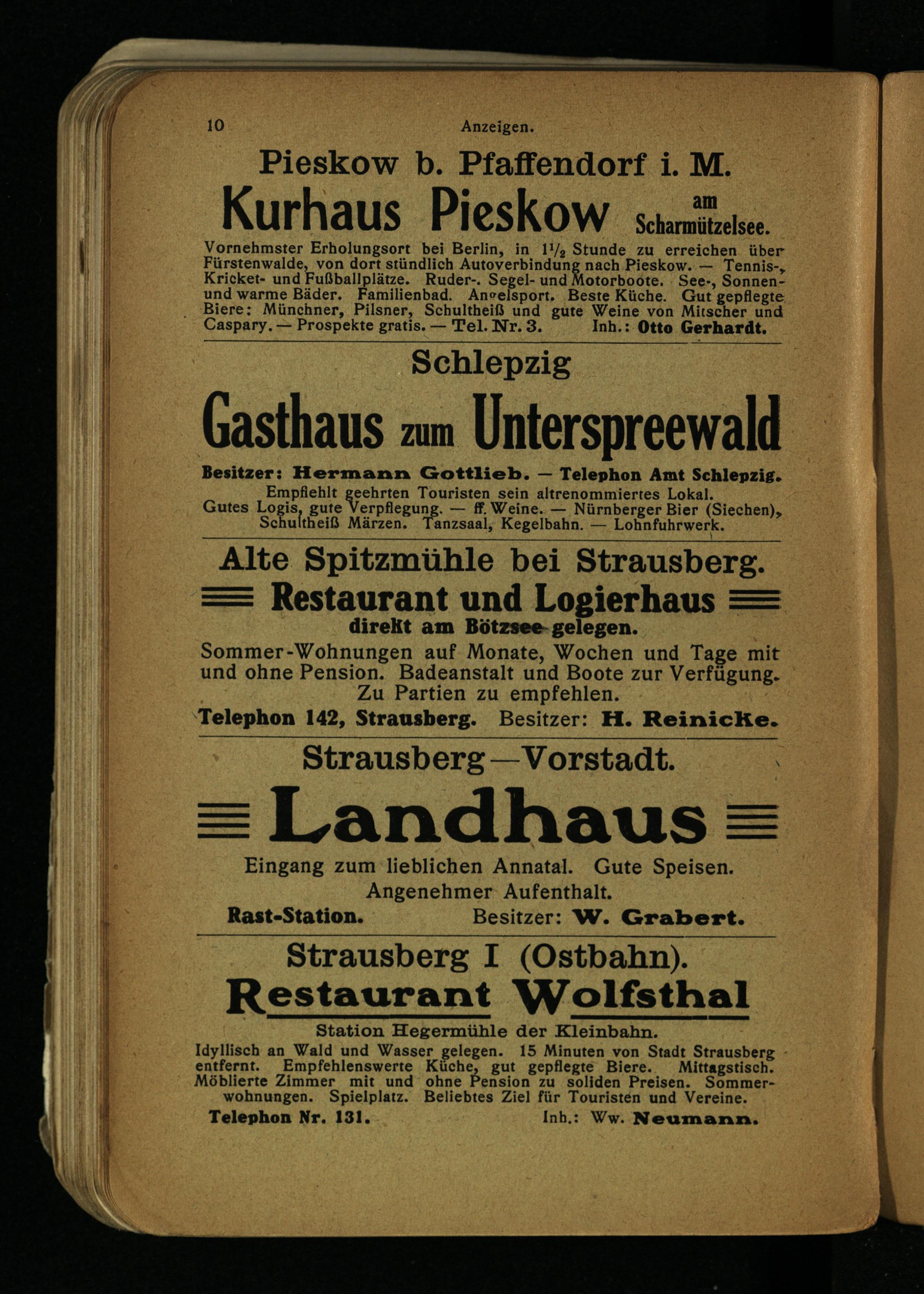 Idyllisch an Wald und Wasser gelegen. 15 Minuten von Stadt Strausberg entfernt. Empfehlenswerte Küche, gut gepflegte Biere. Mittagstisch. Möblierte Zimmer mit und ohne Pension zu soliden Preisen. Sommerwohnungen. Spielplatz. Beliebtes Ziel für Touristen und Vereine. Telephon Nr. 131. Inh,: Ww. Neumann.
