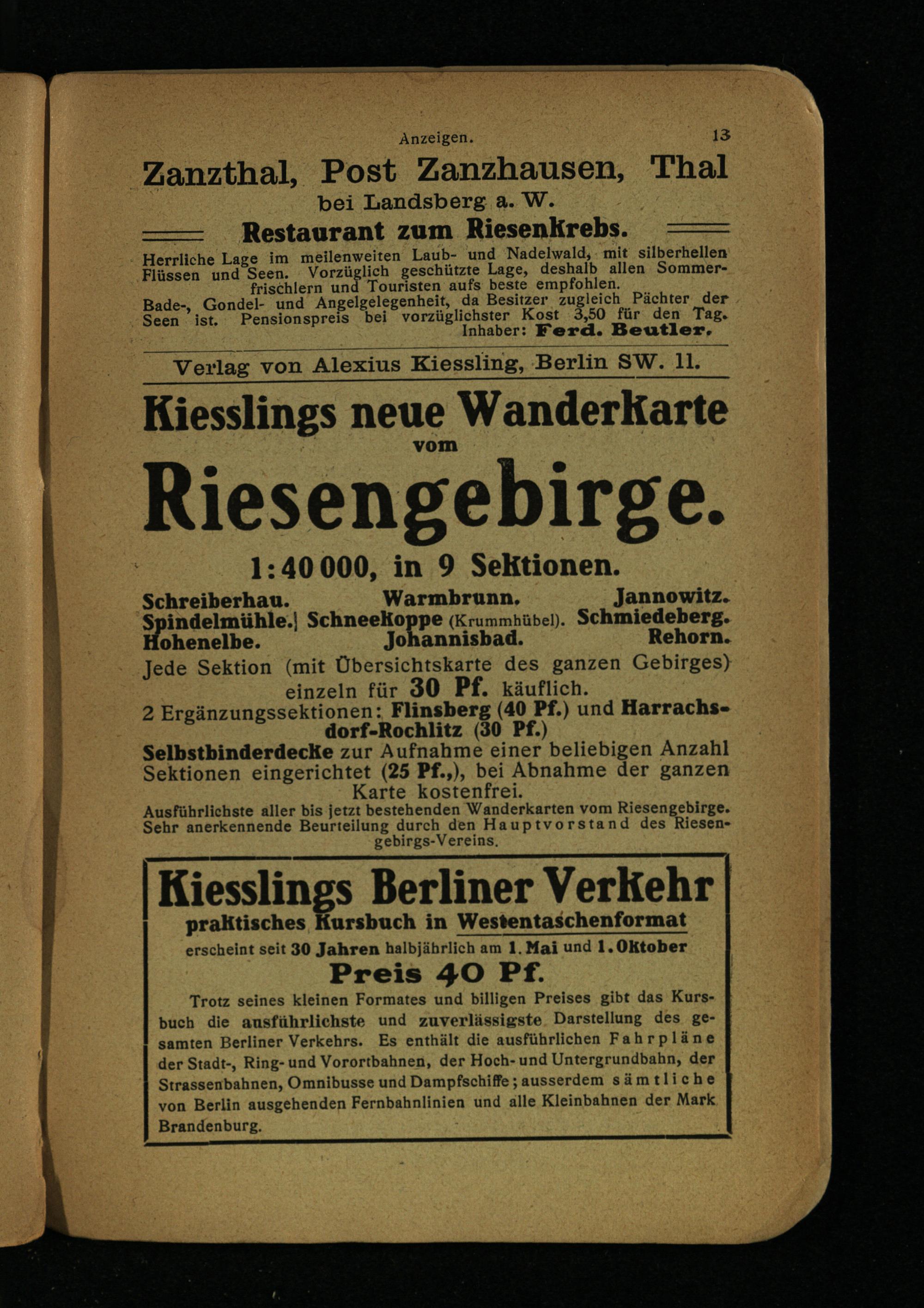 Ver lag von Alexius Kiessling, Berlin SW. 11.