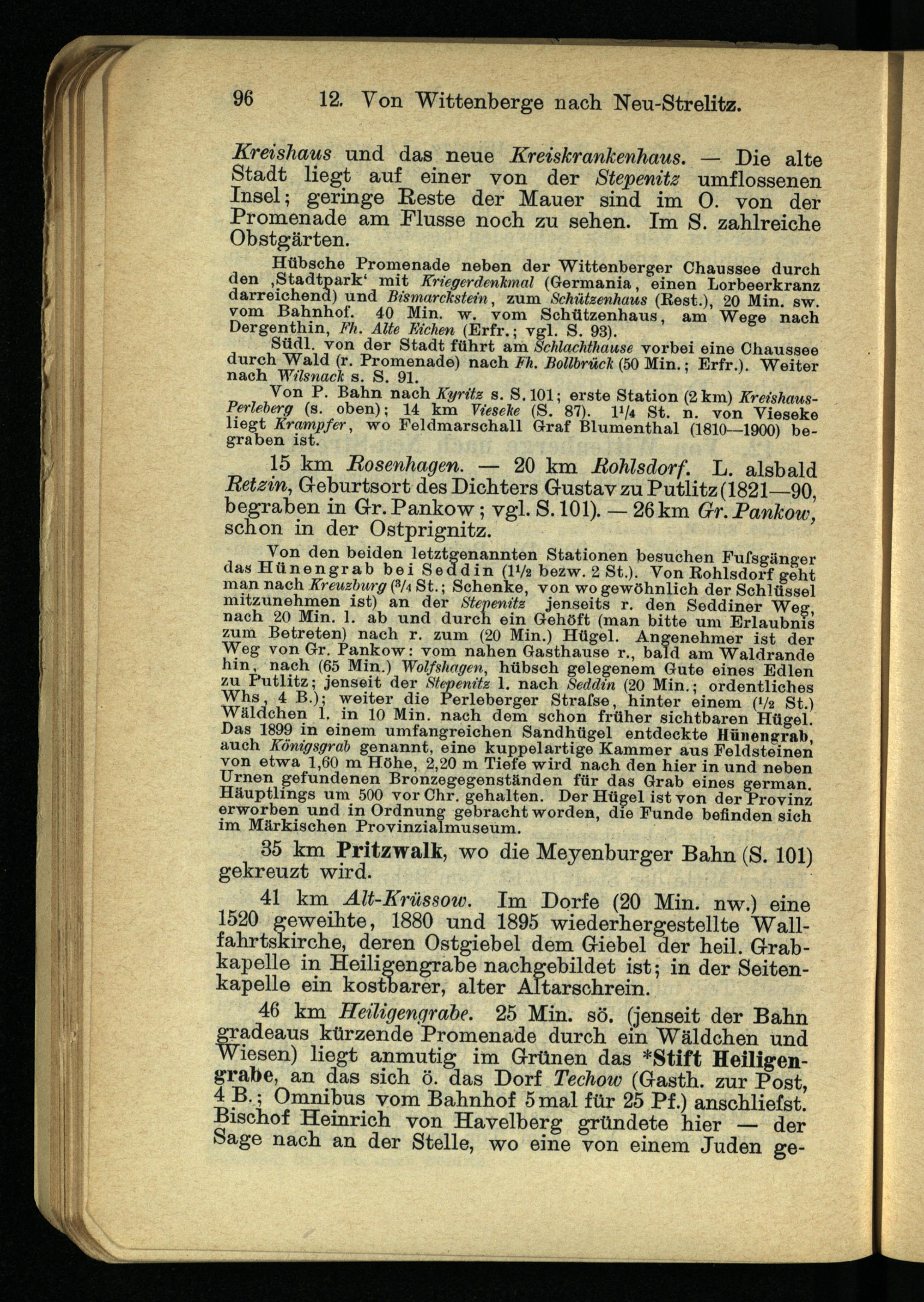 Von P. Bahn nach Kyritz s. S.101; erste Station (2 km) Kreishaus- Perleberg (s. oben); 14 km Vieseke (S. 87). I 1 /« St. n. von Vieseke