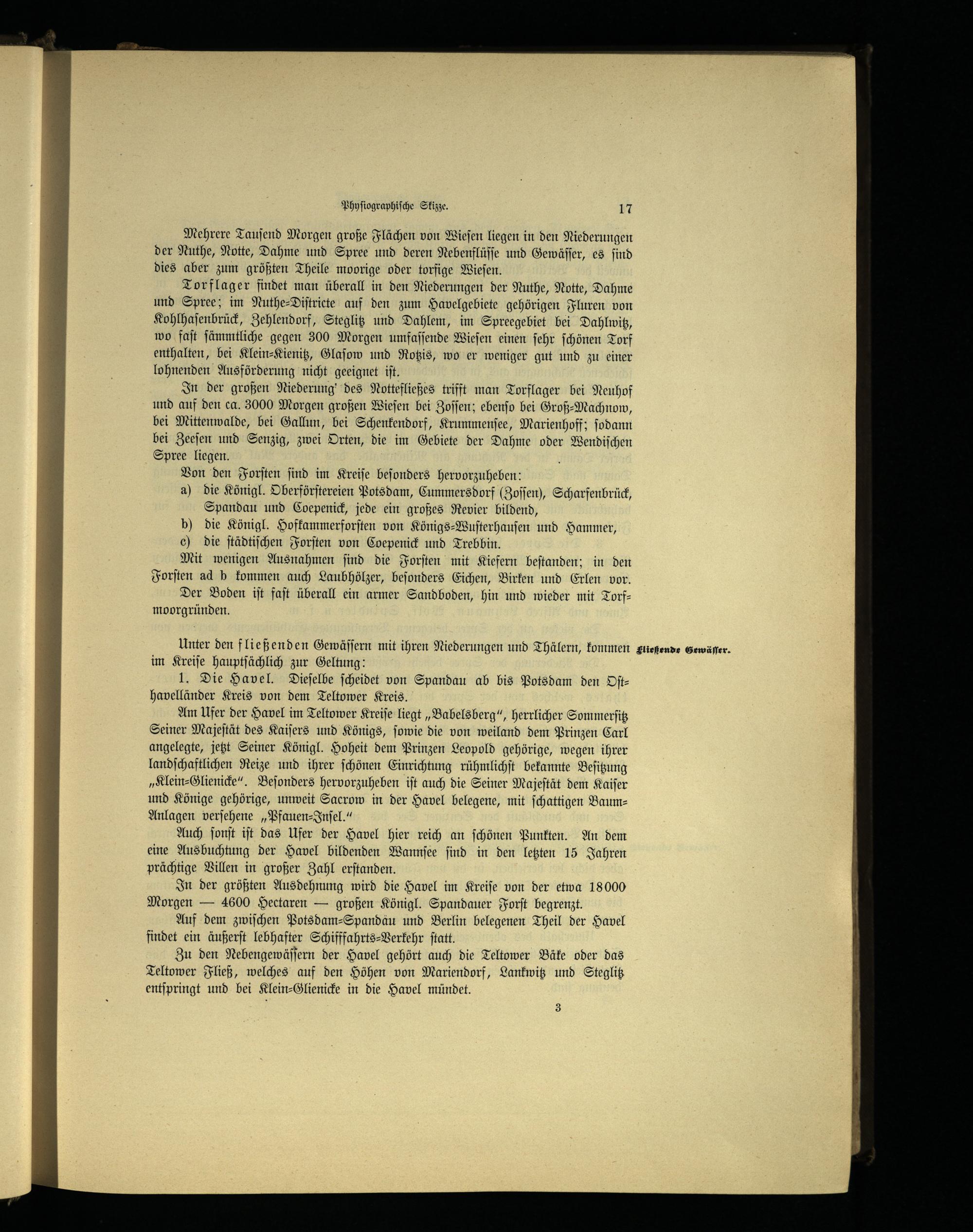 In der größten Ausdehnung wird die Havel im Kreiſe von der etwa 18000 Morgen— 4600 Hectaren— großen Königl. Spandauer Forſt begrenzt.
