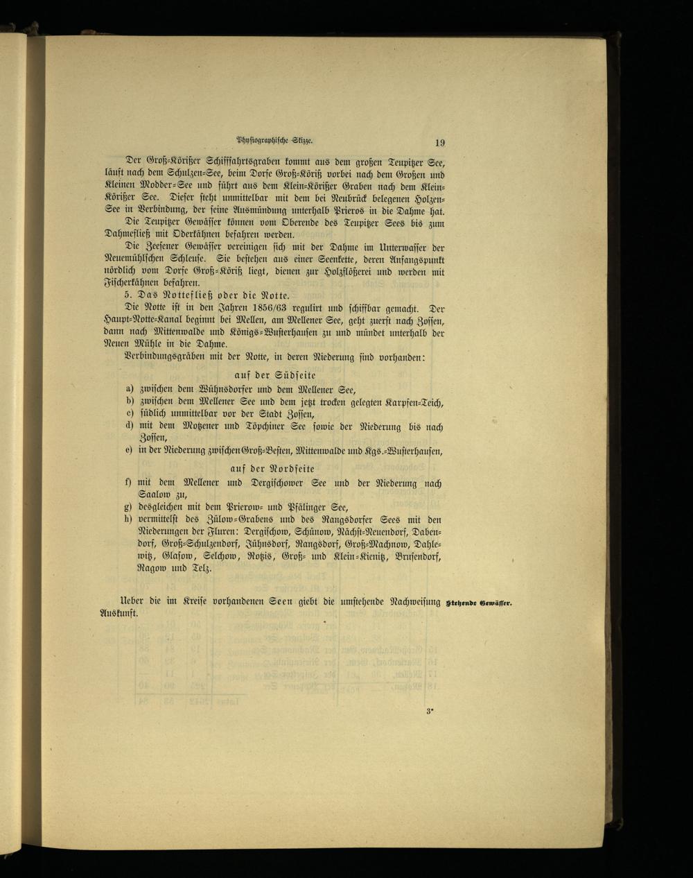 Die Notte iſt in den Jahren 1856/63 regulirt und ſchiffbar gemacht. Der Haupt⸗-Notte⸗Kanal beginnt bei Mellen, am Mellener See, geht zuerſt nach Zoſſen , dann nach Mittenwalde und Königs-Wuſterhauſen zu und mündet unterhalb der Neuen Mühle in die Dahme.