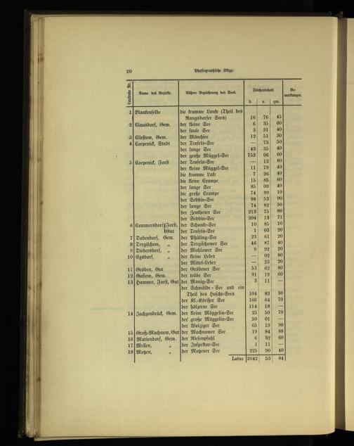 Blankenfelde die krumme Lanke(Theil des Rangsdorfer Sees) Clausdorf, Gem. der kleine See der faule See Clieſtow, Gem. der Mönchſee Coepenick, Stadt der Teufels⸗See der lange See der große Müggel⸗See Coepenick, Forſt der Teufels⸗See der kleine Müggel⸗See die krumme Lake die kleine Crampe der lange See die große Crampe der Seddin⸗See der lange See 82 der Zeuthener See 75 der Seddin⸗See ö 13 nn, der Schunke⸗See 85 Gut der Teufels⸗See 03 Dabendorf, Gem. der Phäling⸗See Dergiſchow, der Dergiſchower See 7 Dieders dorf,„ der Mahlower See{ 92 Egsdorf,. der kleine Leber 1.02 der Mittel-Leber 1 23 Gröben, Gut der Gröbener See| Guſſow, Gem. der trübe See 911 19 Hammer, Forſt, Gut der Manig-See 1 11 der Schmälde⸗See und ein|| Theil des Huſcht⸗Sees 83 der Kl.⸗Körißer See 64 der hölzerne See 18 Jachzenbrück, Gem. der kleine Möggelin⸗See 25 50 der große Möggelin⸗See 50| 01 der Wolziger See Groß⸗Machnow, Gut der Machnower See 19 84 88 z Mariendorf , Gem. der Rieſenpfuhl NJ Mellen, ö. der Inſpektor⸗See J