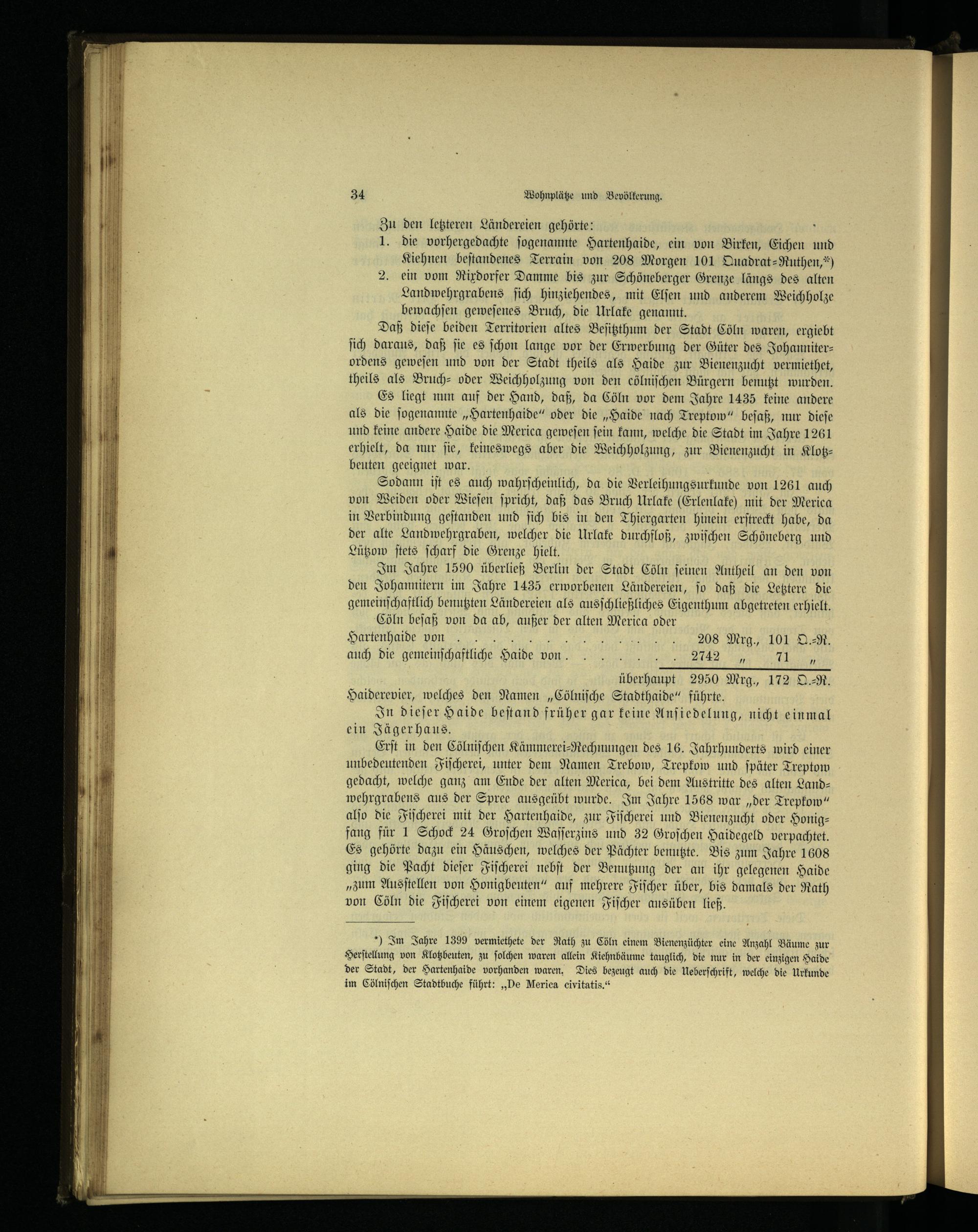 Im Jahre 1590 überließ Berlin der Stadt Cöln ſeinen Antheil an den von den Johannitern im Jahre 1435 erworbenen Ländereien, ſo daß die Letztere die gemeinſchaftlich benutzten Ländereien als ausſchließliches Eigenthum abgetreten erhielt.