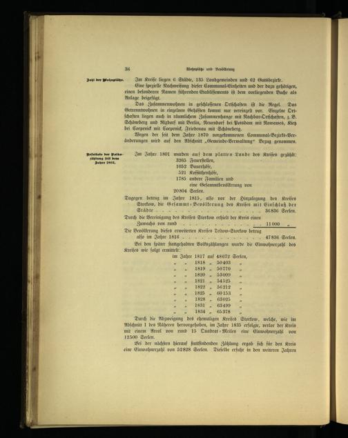 1052 Bauerhöfe, 521 Koſſäthenhöfe, 1785 andere Familien und eine Geſammtbevölkerung von 20 804 Seelen.