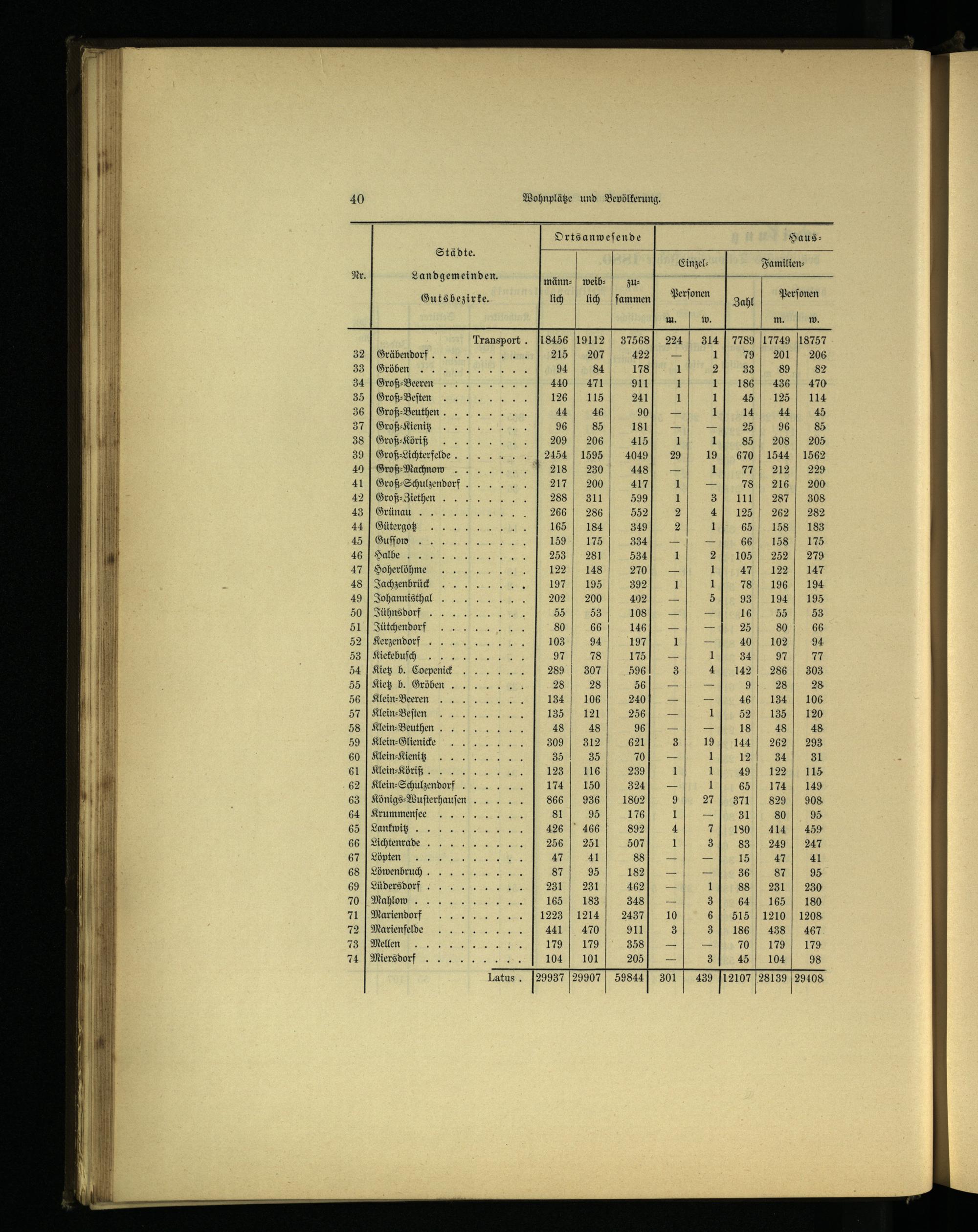 Sräbendorf Gröben Groß⸗Beeren Groß⸗Beſten Groß⸗Beuthen Groß⸗Kienitz Groß⸗Köriß Groß⸗Lichterfelde Groß ⸗Machnow