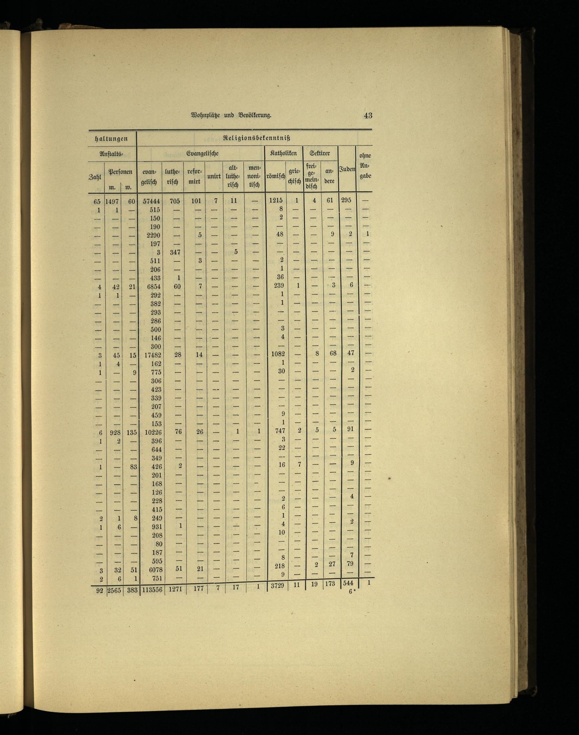 = ffrei. Perſonen refor⸗;. grie⸗ geZahl micg| niet=. giſc meindiſch 57444 515 150 190 2290 197 3 811 206 433 6854 292 382 293 286 500 146 300 17482 162 775 306 423 339 207 459 153 10226 396 644 349 426 201 168 126 228 415 249 931 208 80 187 595 51 6078 1 751