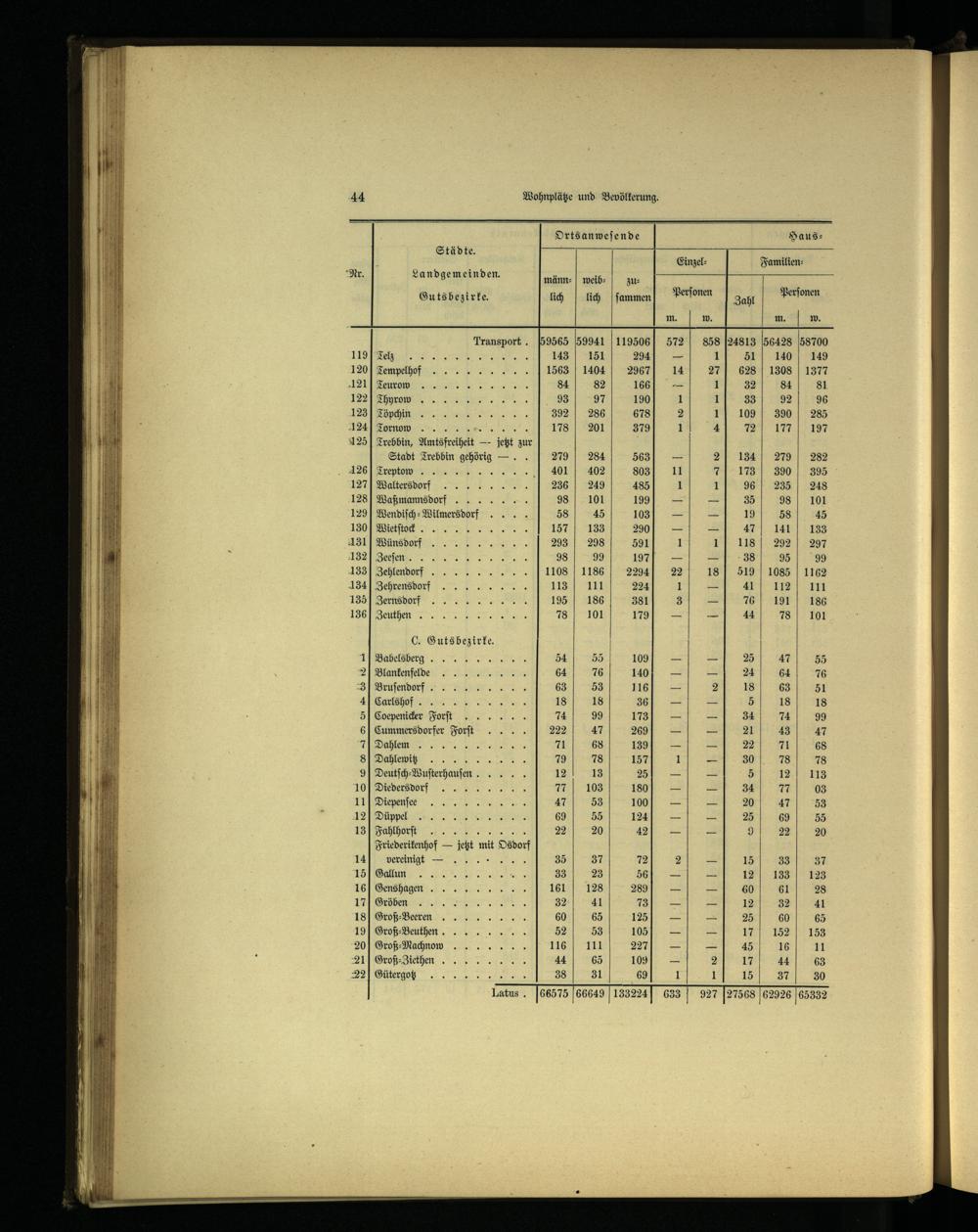 Wohnplätze und Bevölkerung.