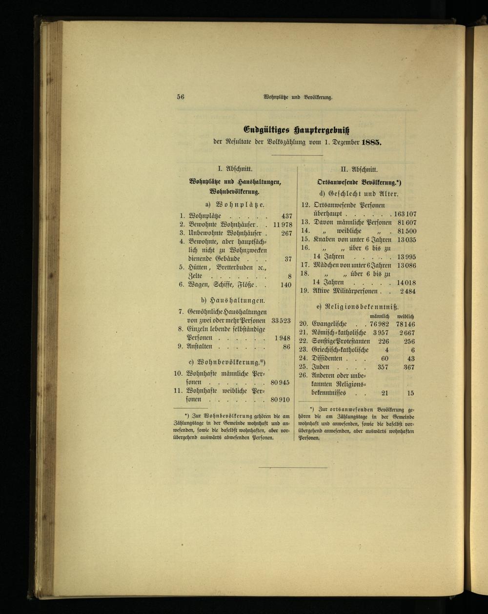 Endgültiges Hauptergebniß der Reſultate der Volkszählung vom 1. Dezember 1885.