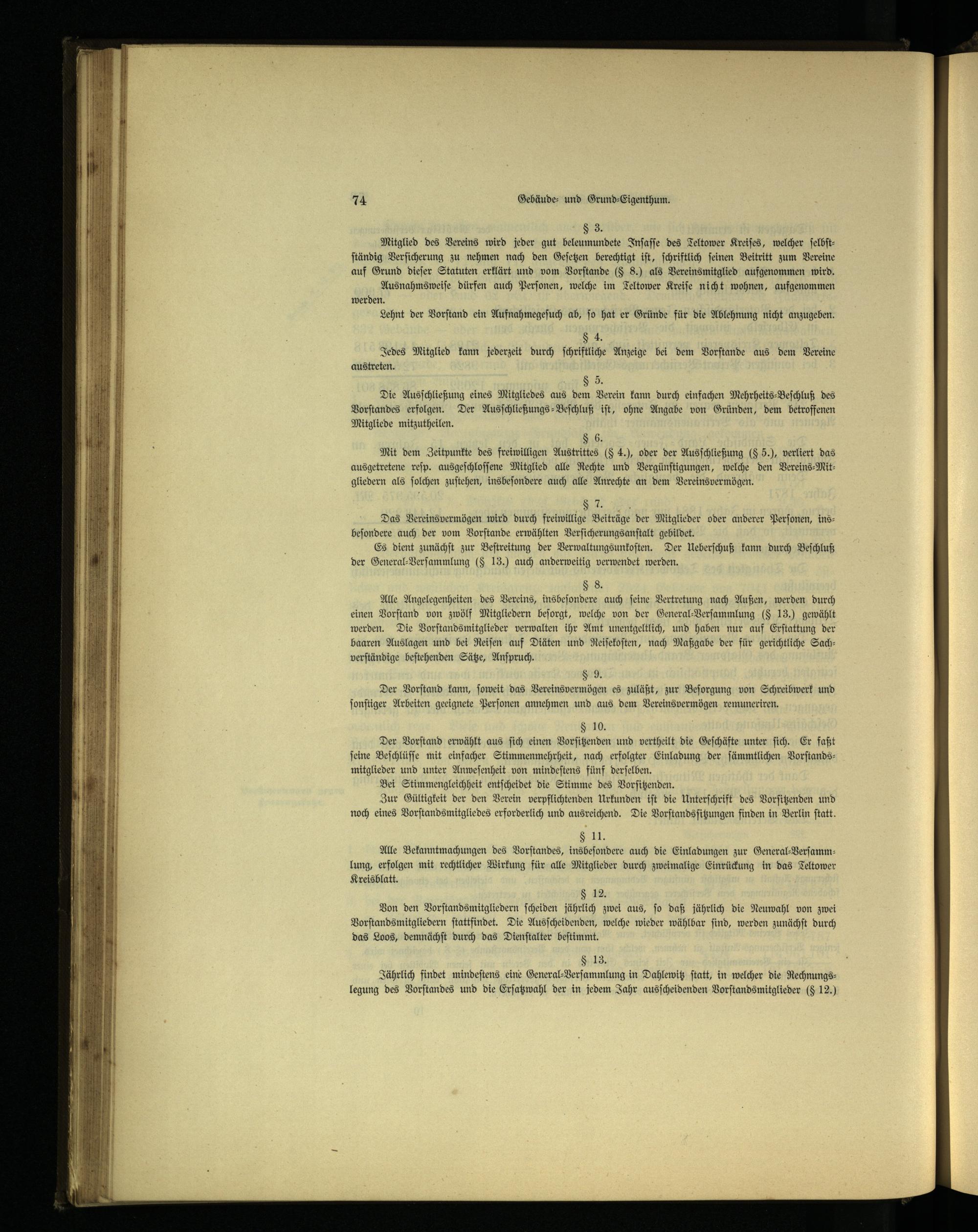 Jährlich findet mindeſtens eine General-Verſammlung in Dahlewitz ſtatt, in welcher die Rechnungslegung des Vorſtandes und die Erſatzwahl der in jedem Jahr ausſcheidenden Vorſtandsmitglieder(5 12.)
