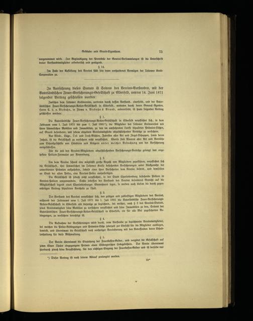 In Ausführung dieſes Statuts iſt Seitens des Vereins-Vorſtandes, mit der Vaterländiſchen Feuer⸗Verſicherungs⸗Geſellſchaft zu Elberfeld , unterm 14. Juni 1871 folgender Vertrag geſchloſſen worden:
