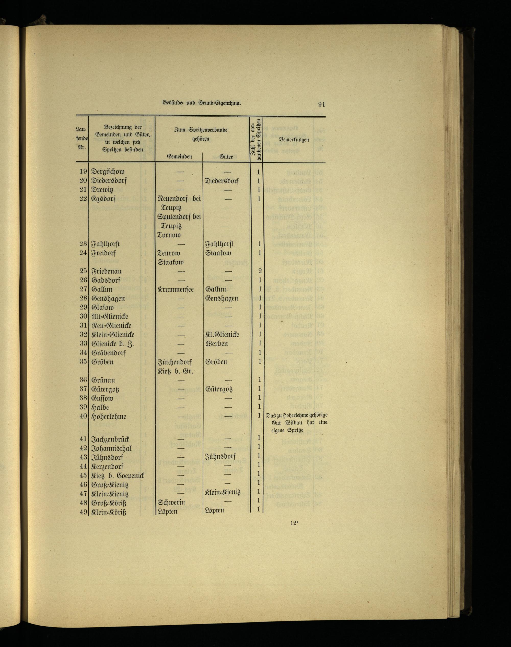 Bezeichnung der Gemeinden und Güter, in welchen ſich Spritzen befinden