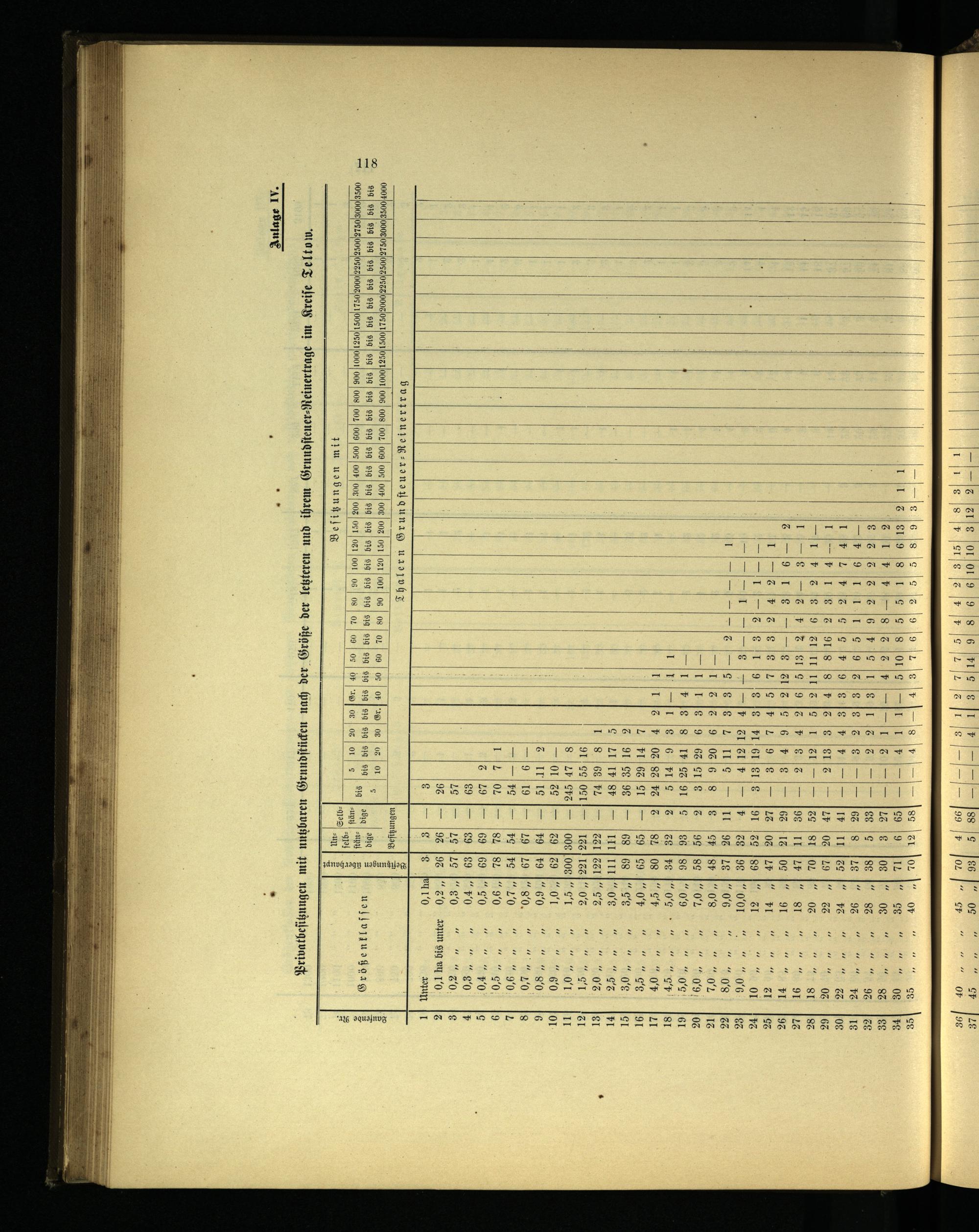 Prinatbeſitzungen mit untzbaren Grundſtücken nach der Größe der letzteren und ihrem Grundſteuer⸗Reinertrage im Kreiſe Teltow.