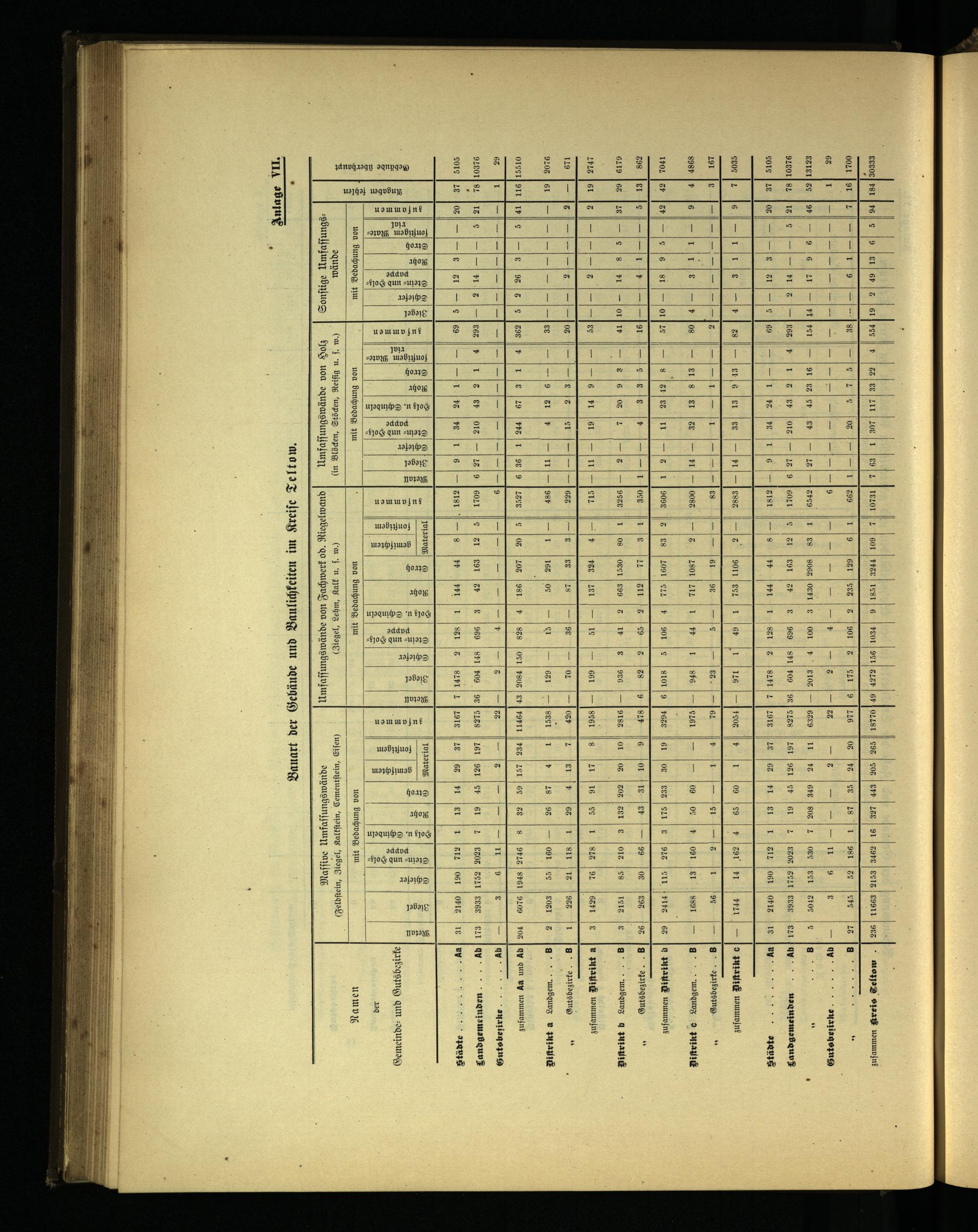 Maſſive Umfaſſungswände Umfaſſungswände von Fachwerk od. Riegelwand Umfaſſungswände von Holz Sonſtige Umfaſſungs. Siegel,. kö Eiſen) Siegel, Lehm, Kalk u. ſ. w.)(in Blöcken, Stöcken, Reiſig u. ſ. w. wände