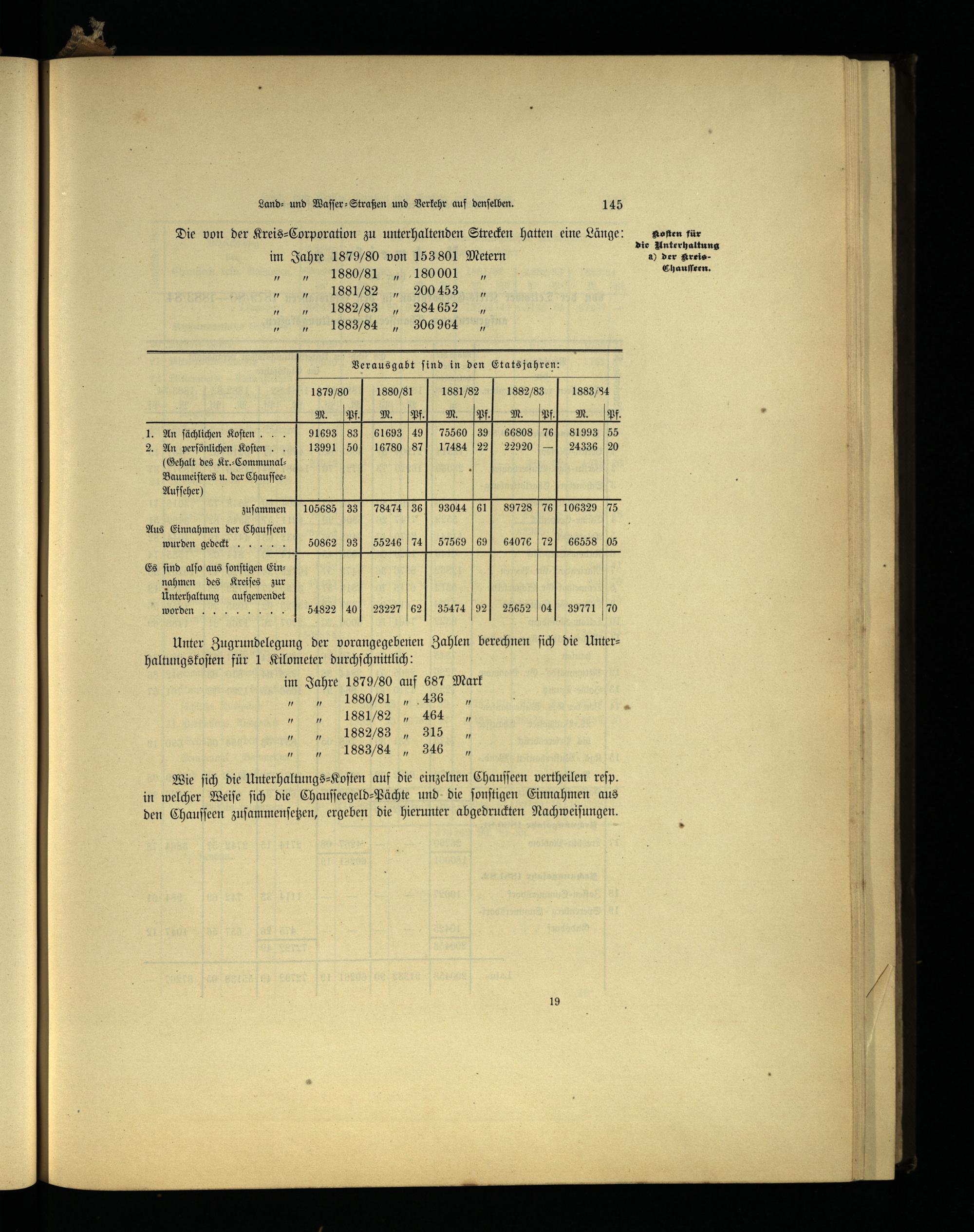 Die von der Kreis⸗Corporation zu unterhaltenden Strecken hatten eine Länge: aoſten für die Unterhaltung