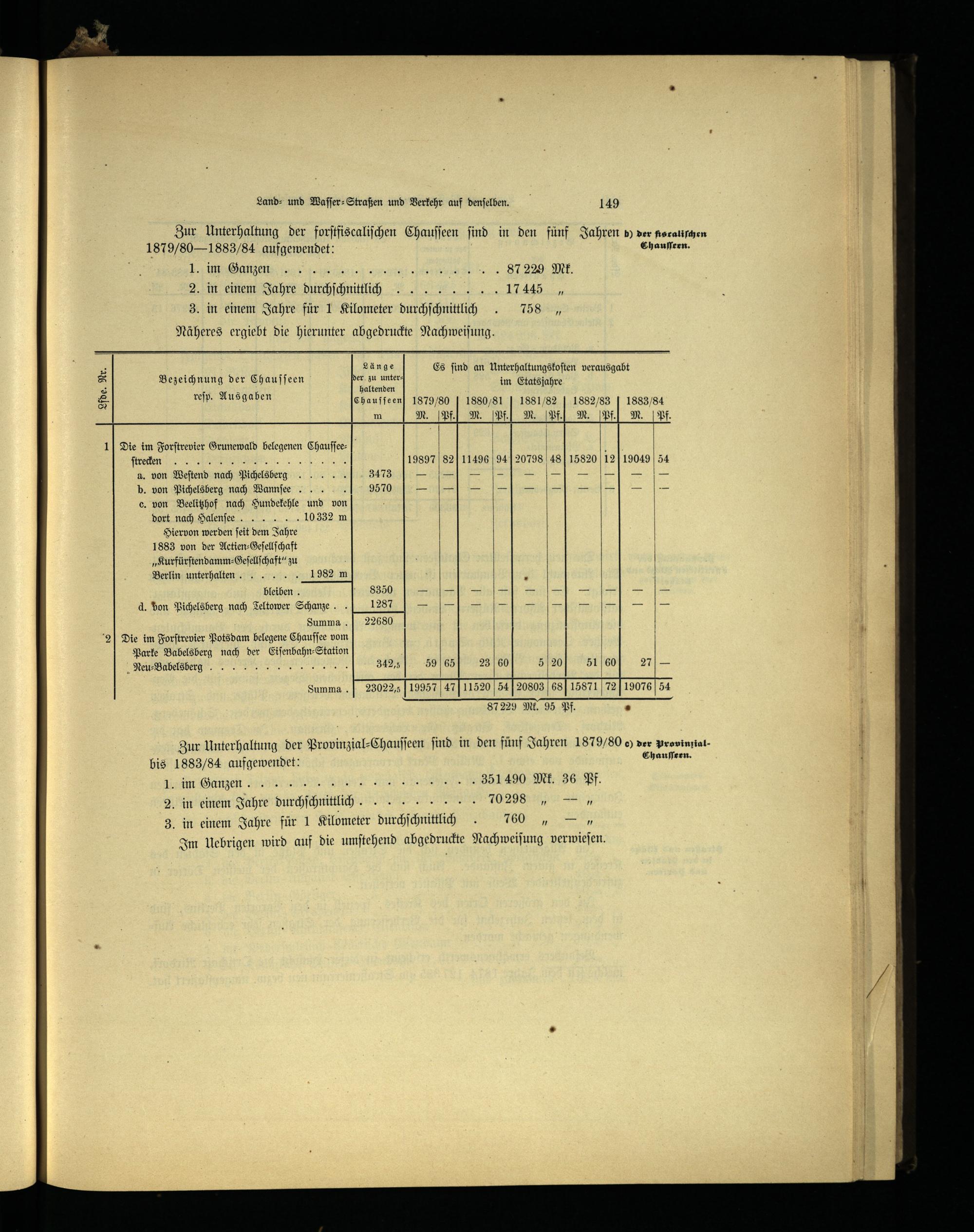 Land- und Waffer: Straßen und Verkehr auf denſelben. 149 Zur Unterhaltung der forſtfiscaliſchen Chauſſeen find in den fünf Jahren b) der faraliſchen 1879,80- 1883, 8.6 aufgewendet: ß