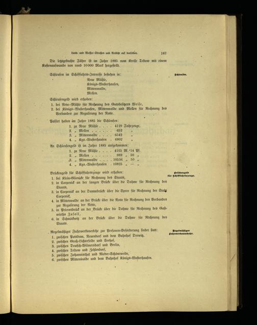 Die lettgedachte Fähre iſt im Jahre 1885 vom Kreiſe Teltow mit einem Koſtenaufwande von rund 10000 Mark hergeſtellt.