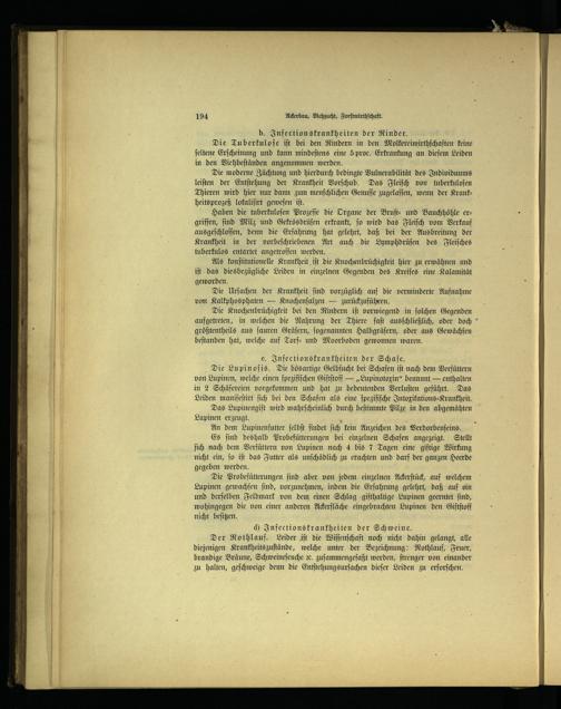 Die moderne Züchtung und hierdurch bedingte Vulnerabilität des Individuums leiſten der Entſtehung der Krankheit Vorſchub. Das Fleiſch von tuberkuloſen Thieren wird hier nur dann zum menſchlichen Genuſſe zugelaſſen, wenn der Krankheitsprozeß lokaliſirt geweſen iſt.