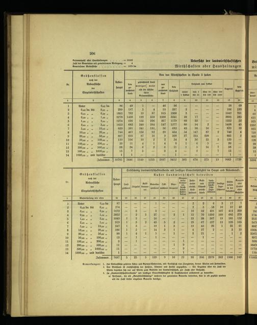 Bemerkungen: 1. Zur Anbaufläche gehören Acker⸗ und Garten⸗Ländereien, mit Ausſchluß von Ziergärten, ferner Wieſen und Fettweiden. 2. Der Viehſtand iſt einſchließlich der Fohlen, Lämmer und Ferkel angegeben.— Die Angaben über die Zahl der Pferde beziehen ſich nur auf Pferde zum Betriebe der Landwirthſchaft, zur Zucht oder Aufzucht. 3. Zu„Landwirthſchafttreibende“ mit ſonſtiger Erwerbsthätigkeit iſt Nachſtehendes erläuternd zu bemerken: a) Perſonen, die als„Berufsſelbſtändige“ mehrere der genannten Gewerbe betreiben, ſind ſo oft gezählt worden als die Zahl dieſer einzelnen Gewerbe beträgt;