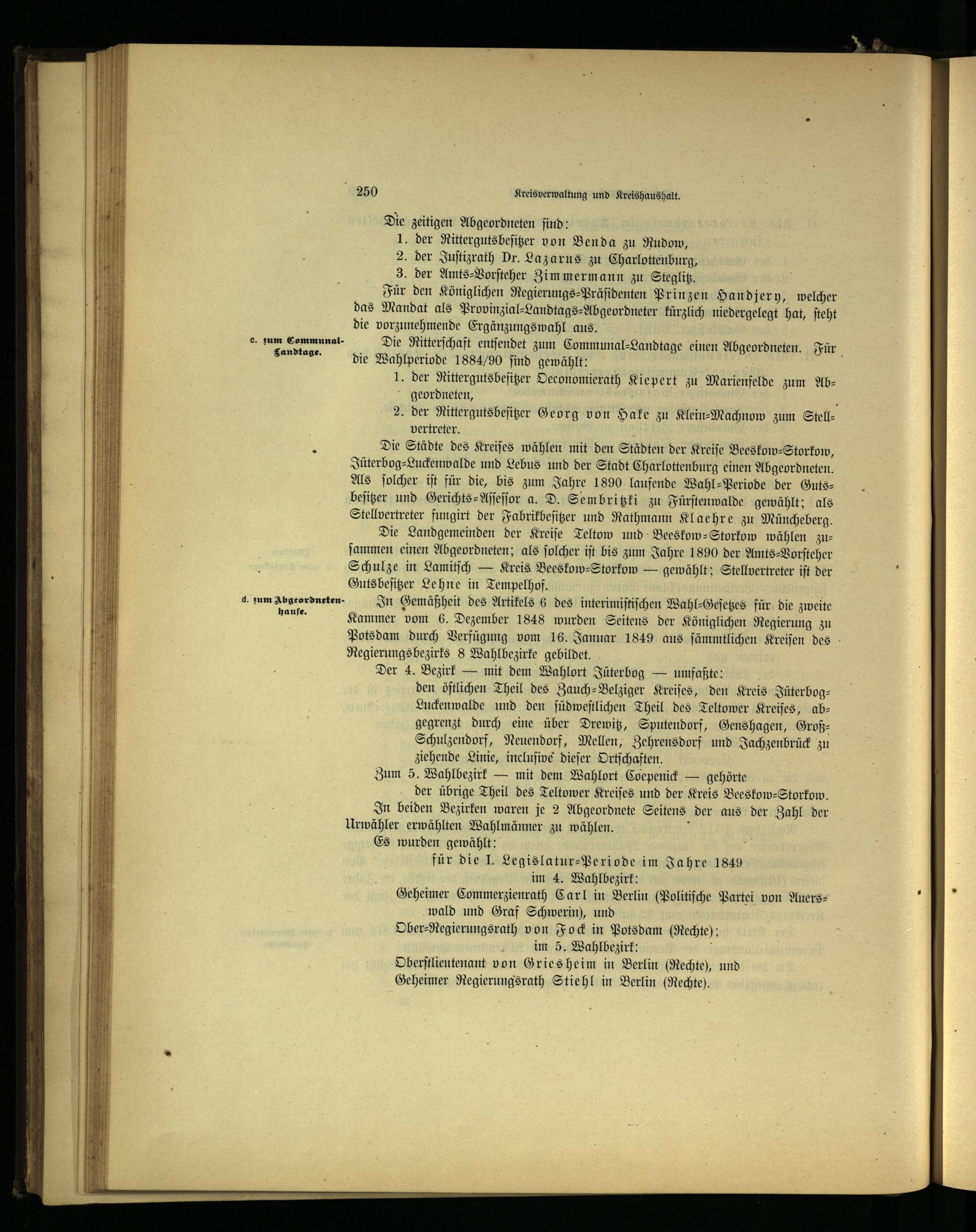 Die Städte des Kreiſes wählen mit den Städten der Kreiſe Beeskow⸗Storkow , Jüterbog⸗Luckenwalde und Lebus und der Stadt Charlottenburg einen Abgeordneten. Als ſolcher iſt für die, bis zum Jahre 1890 laufende Wahl-Periode der Guts—beſitzer und Gerichts⸗Aſſeſſor a. D. Sembritzki zu Fürſtenwalde gewählt; als Stellvertreter fungirt der Fabrikbeſitzer und Rathmann Klaehre zu Müncheberg .