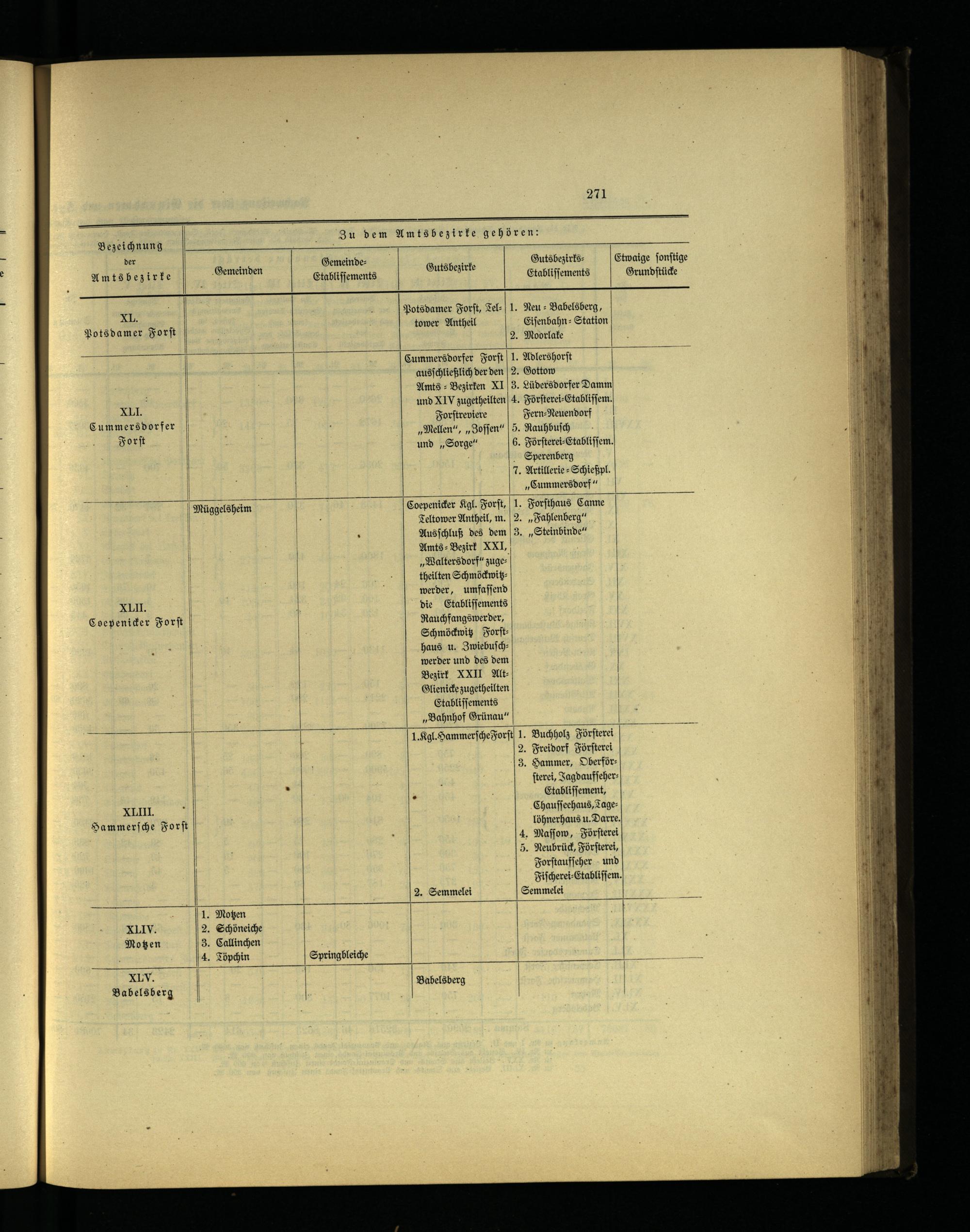 Coepenicker Kgl. Forſt, Teltower Antheil, m. Ausſchluß des dem Amts⸗Bezirk XXI, „Waltersdorf zugetheilten Schmöckwitzwerder, umfaſſend die Etabliſſements Rauchfangswerder, Schmöckwitz Forſthaus u. Zwiebuſchwerder und des dem Bezirk XXII AltGlienicke zugetheilten
