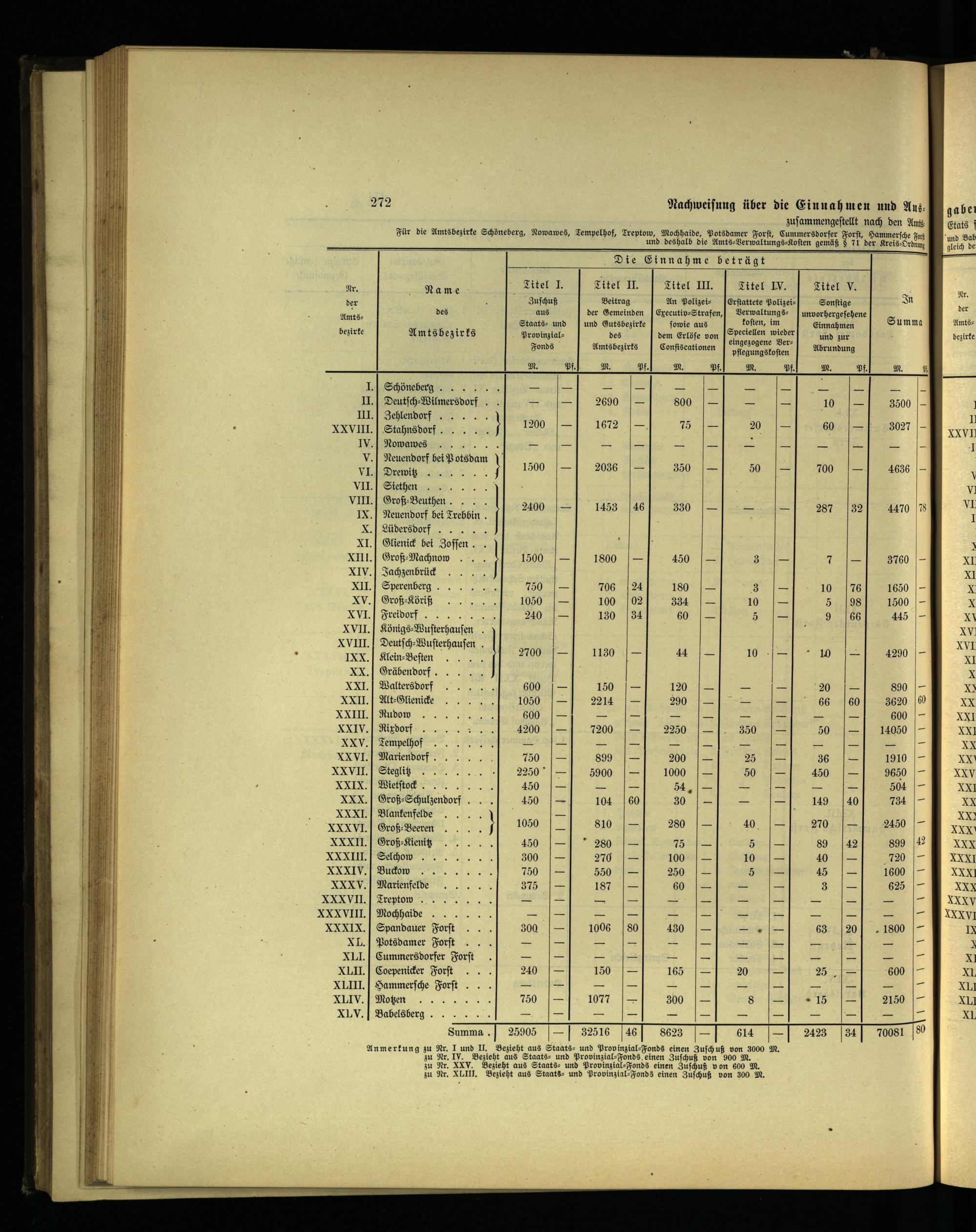 Für die Amtsbezirke Schöneberg , Nowawes, Tempelhof , Treptow , Mochhaide, Potsdamer Forſt, Cummersdorfer Forſt, Hammerſche For und Bab und deshalb die Amts⸗Verwaltungs⸗Koſten gemäß F 71 der Kreis⸗Ordnm gleich de