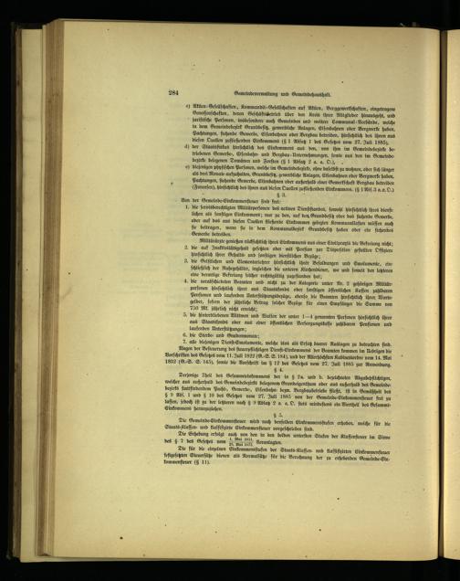 d) der Staatsfiskus hinſichtlich des Einkommens aus den, von ihm im Gemeindebezirke betriebenen Gewerbe-, Eiſenbahn- und Bergbau-Unternehmungen, ſowie aus den im Gemeinde: bezirke belegenen Domänen und Forſten($ 1 Abſatz 2 a. a. O.),