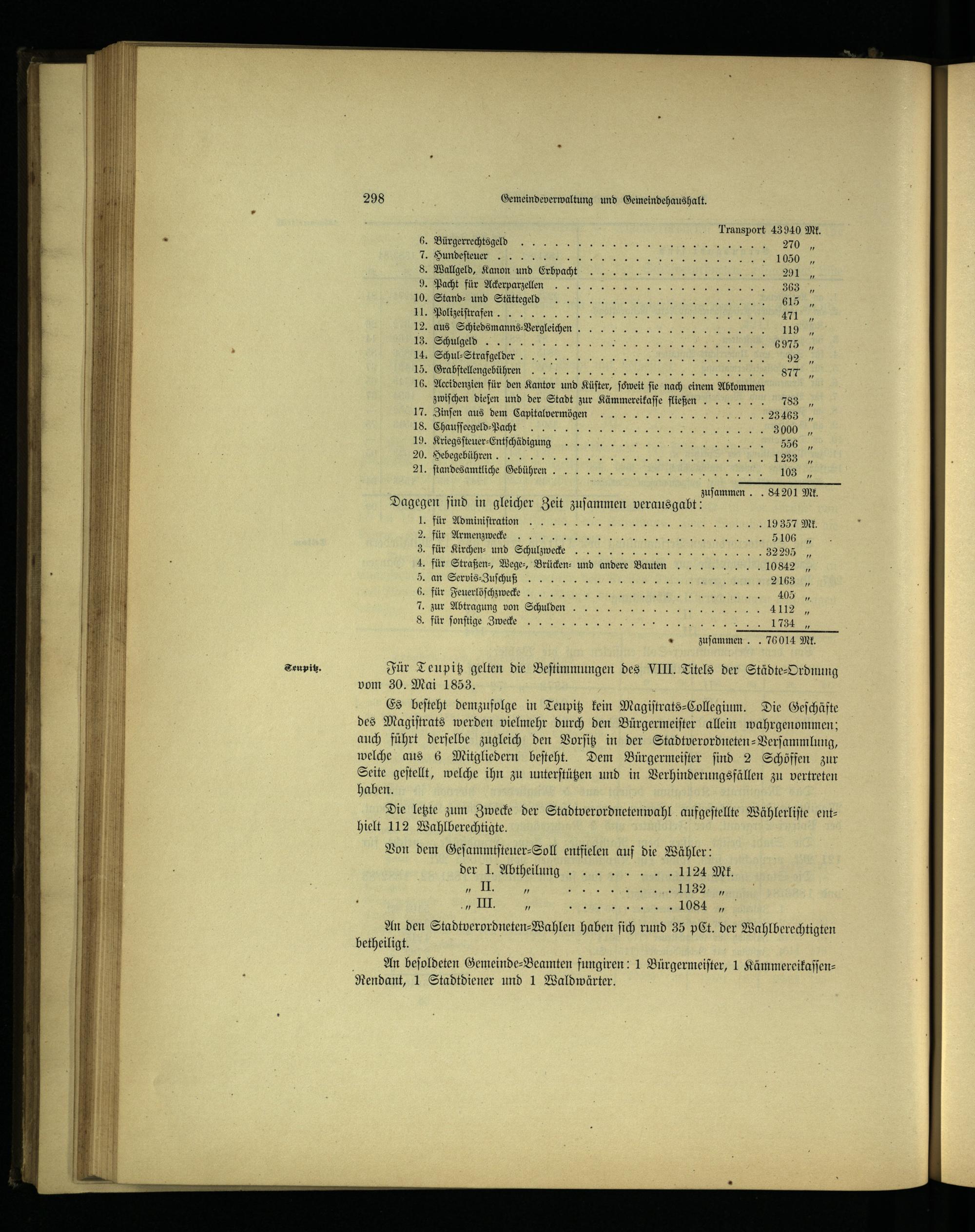 Für Teupfitz gelten die Beſtimmungen des VIII. Titels der Städte-Ordnung vom 30. Mai 1853.;