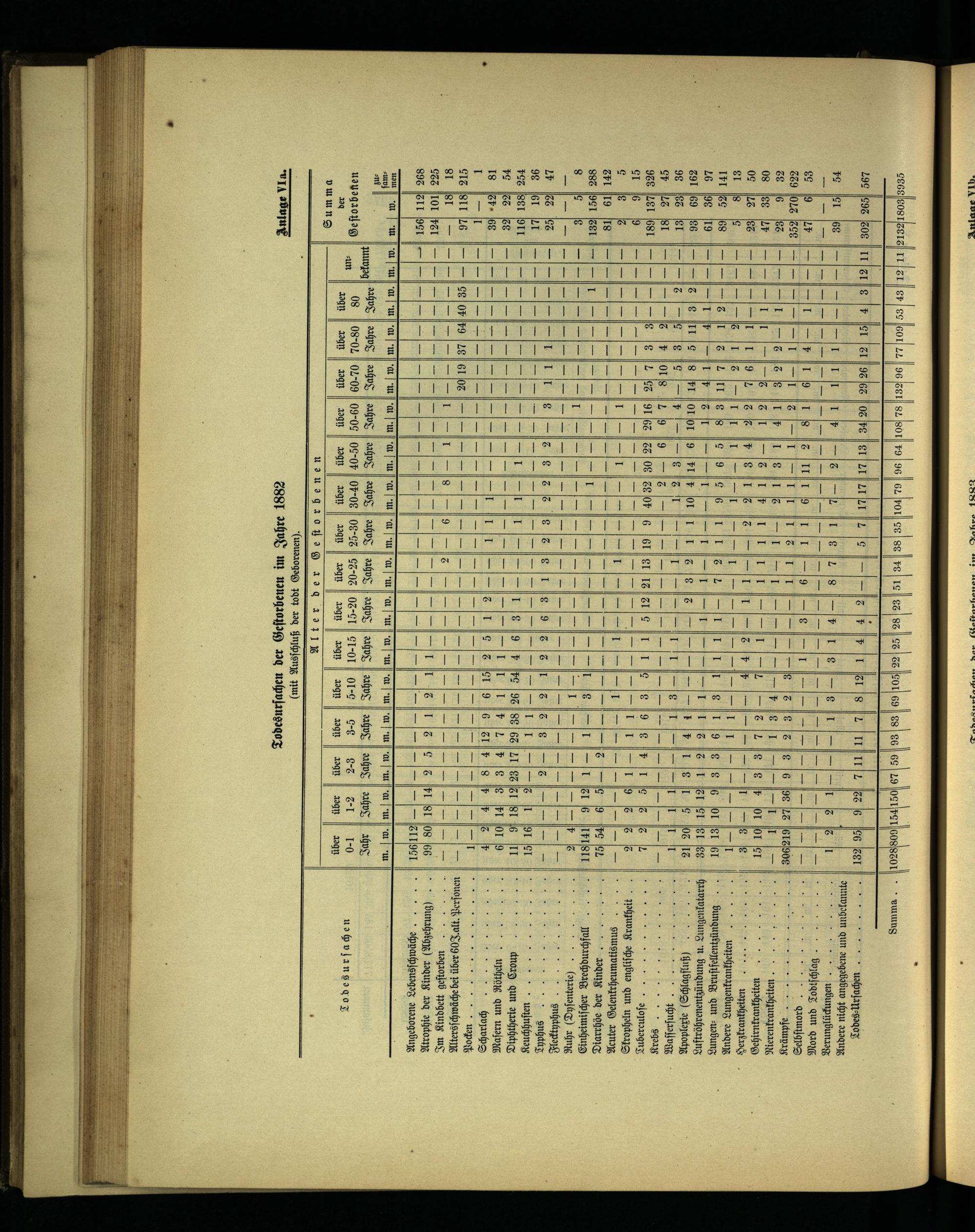 Todesurſachen der Geſtorbenen im Jahre 1882 Anlage Ia.