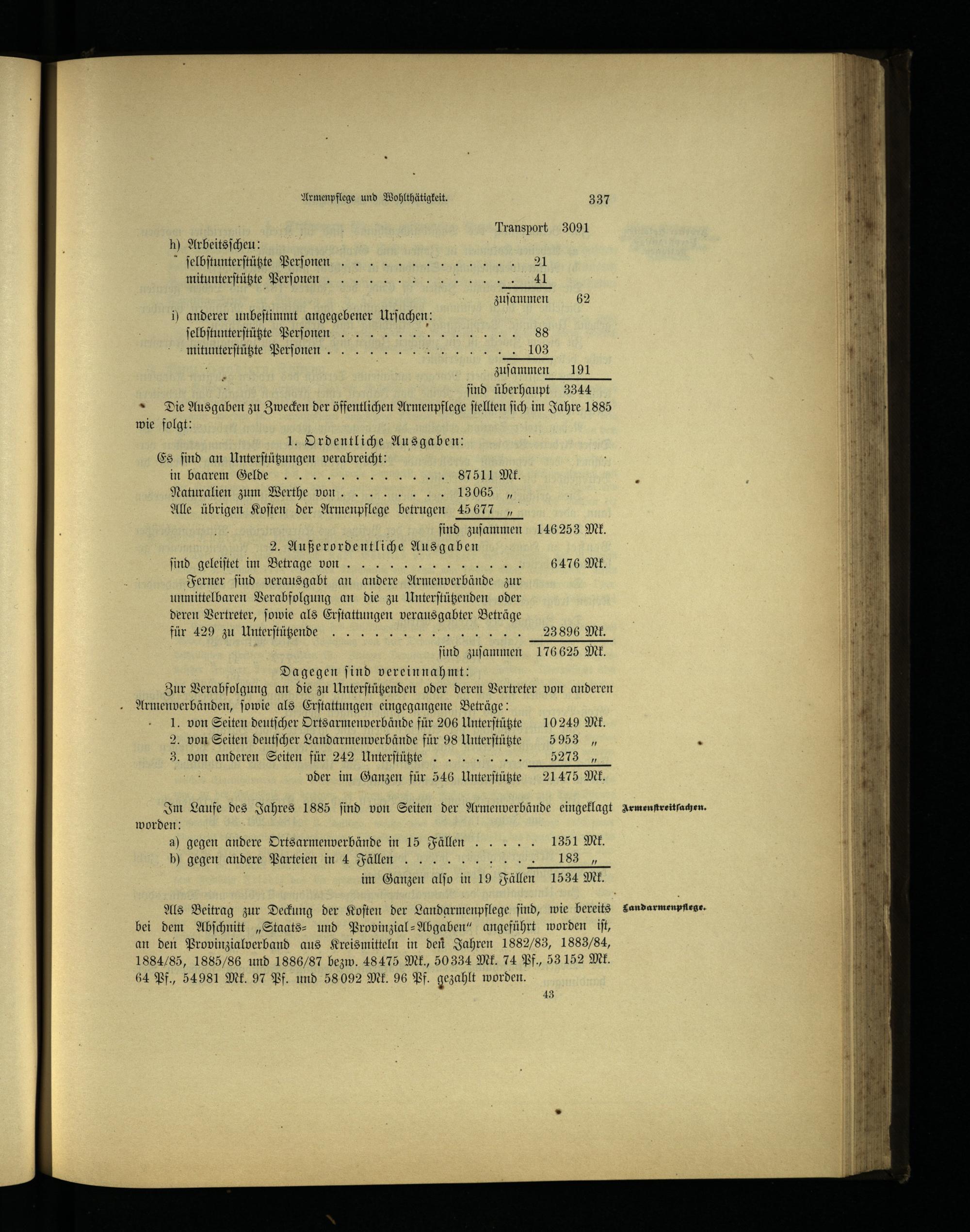 Im Laufe. Jahres 1885 find von Seiten der Armenverbände eingeklagt Armenſtreitſachen. worden: