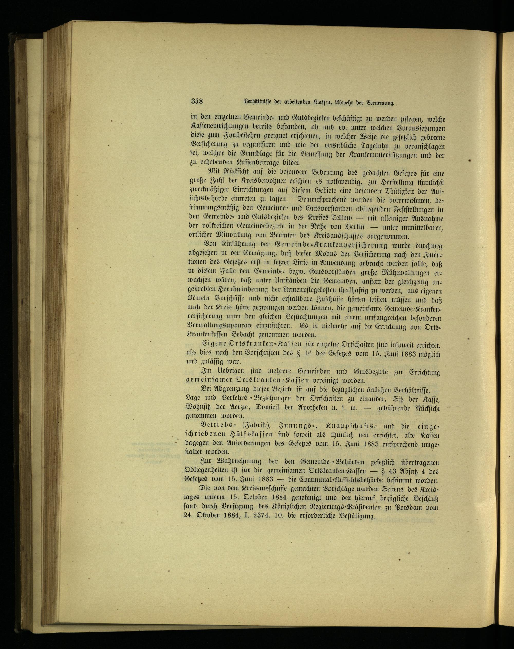 Die von dem Kreisausſchuſſe gemachten Vorſchläge wurden Seitens des Kreis— tages unterm 15. October 1884 genehmigt und der hierauf bezügliche Beſchluß fand durch Verfügung des Königlichen Regierungs-Präſidenten zu Potsdam vom 24. Oktober 1884, J. 2374. 10. die erforderliche Beſtätigung.