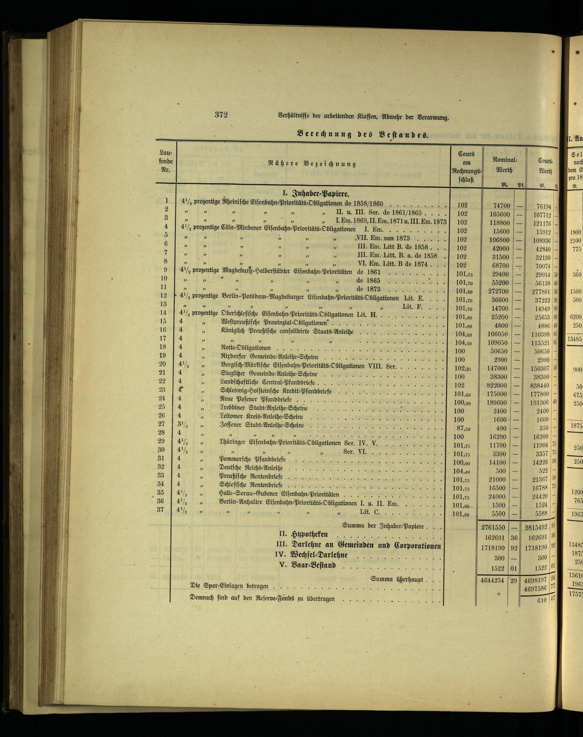 III. Darlehne an Gemeinden und Corporationen