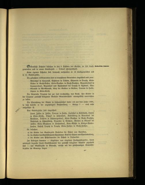 Oeffentliche Schulen beſtehen in den 6 Städten des Kreiſes, in 123 Land⸗ Geffentlihe Schulen. gemeinden und in einem Gutsbezirke— Osdorf Heinersdorf.