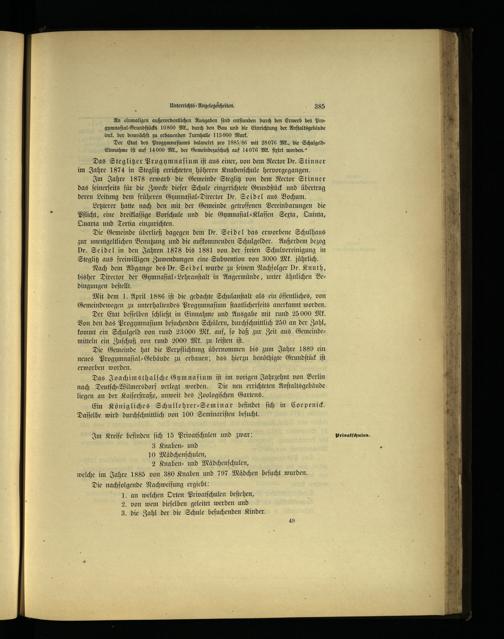 Mit dem 1. April 1886 iſt die gedachte Schulanſtalt als ein öffentliches, von Gemeindewegen zu unterhaltendes Progymnaſium ſtaatlicherſeits anerkannt worden.