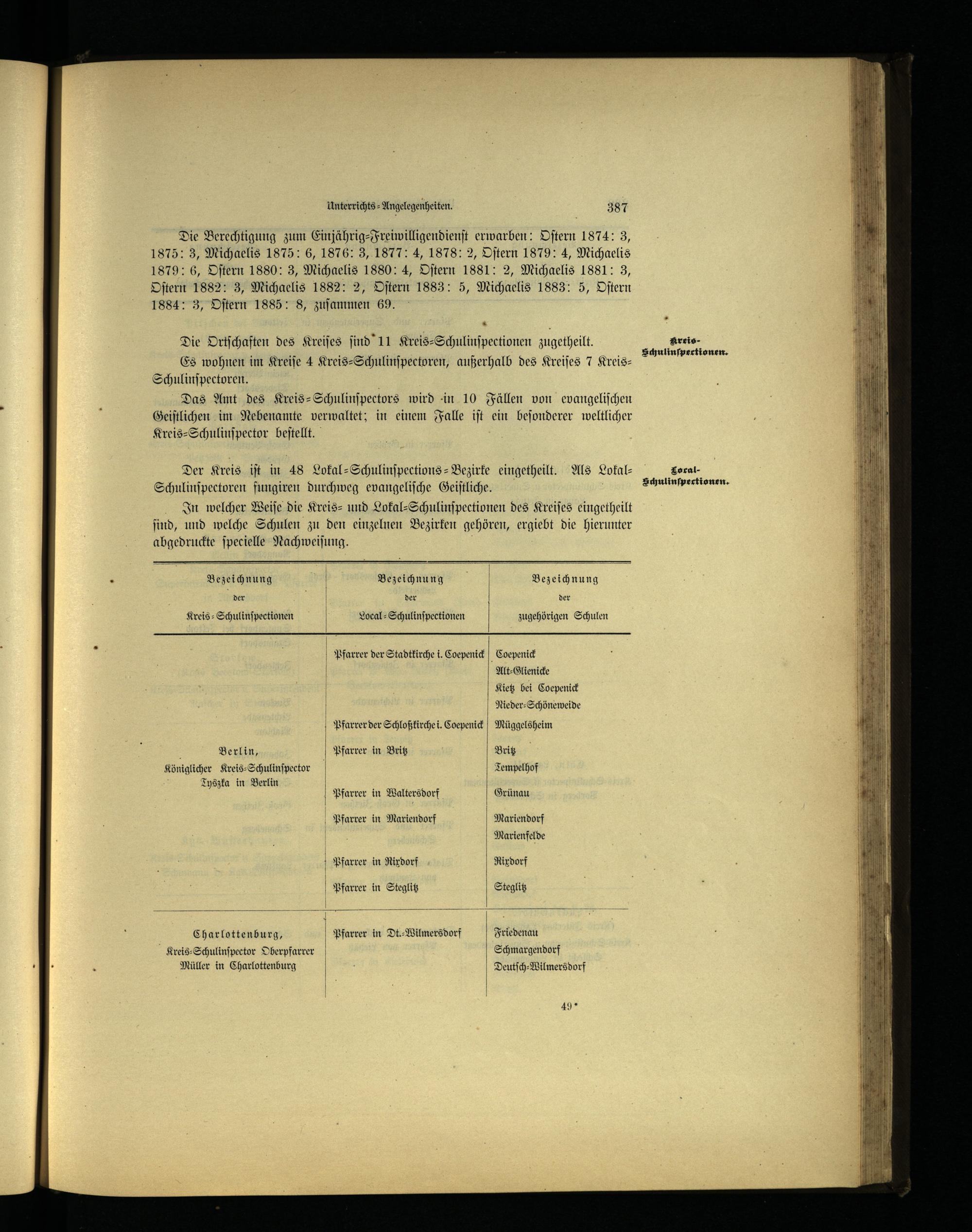 Der Kreis iſt in 48 Lokal-Schulinſpections-Bezirke eingetheilt. Als Lokal— Schulinſpectoren fungiren durchweg evangeliſche Geiſtliche.