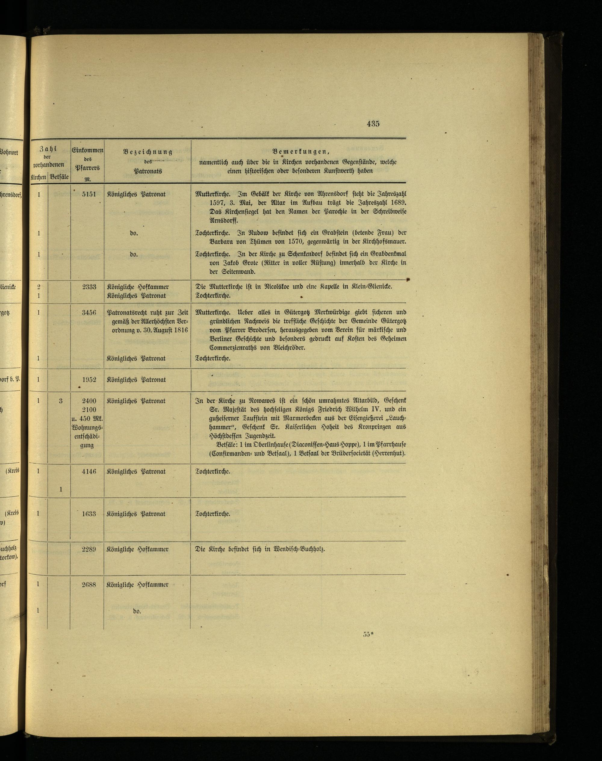 Königliche Hofkammer Die Mutterkirche iſt in Nicolskoe und eine Kapelle in Klein⸗Glienicke . Königliches Patronat Tochterkirche ..