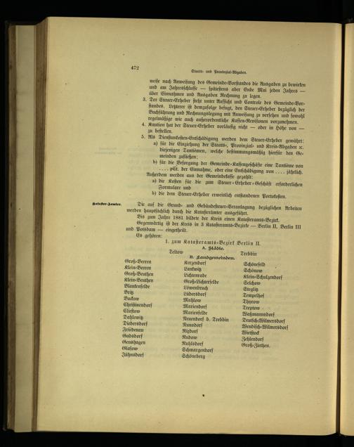 Gegenwärtig iſt der Kreis in 3 Kataſteramts⸗Bezirke— Berlin II, Berlin III und Potsdam — eingetheilt.