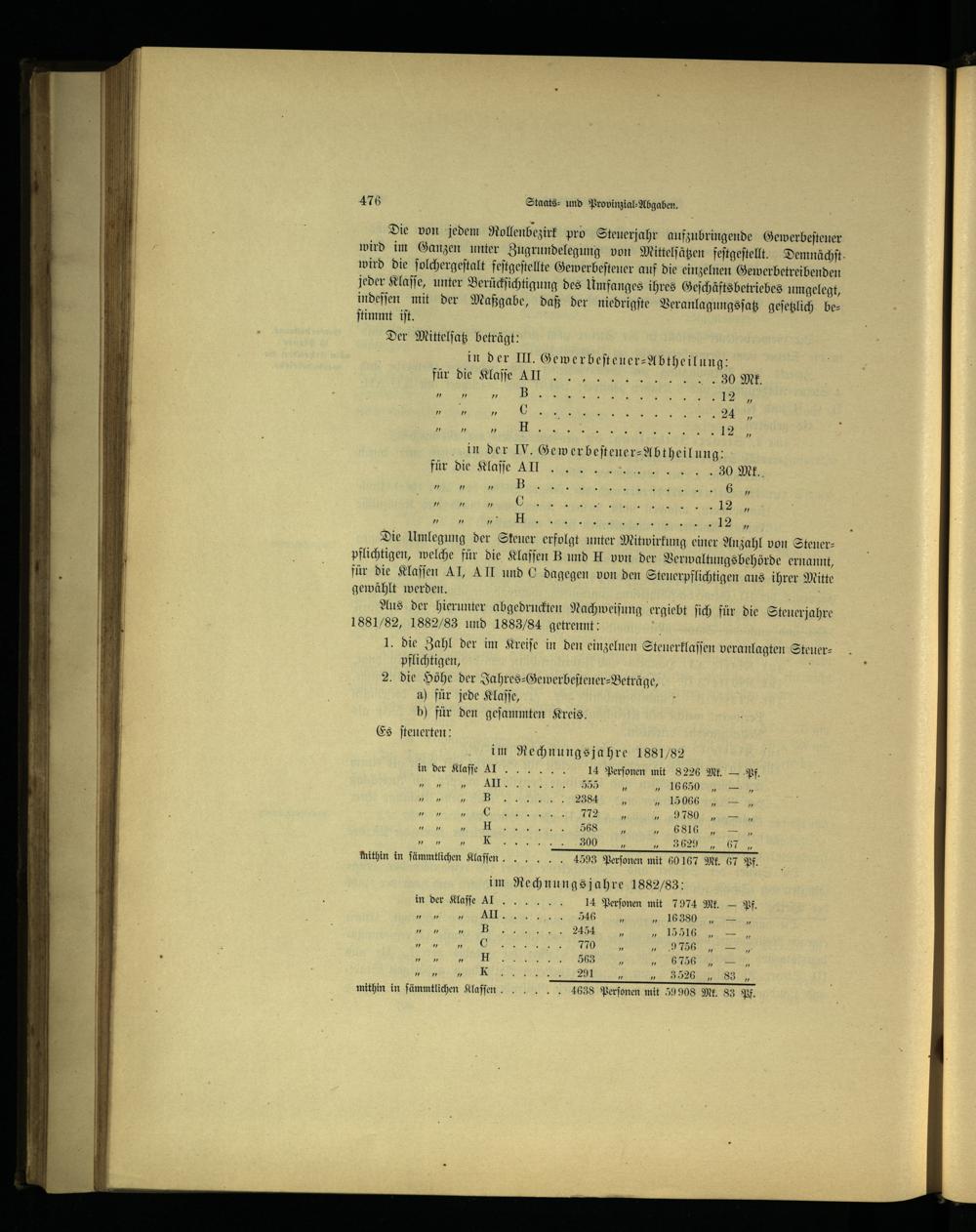 Aus der hierunter abgedruckten Nachweiſung ergiebt ſich für die Steuerjahre 1881/82, 1882/83 und 1883.84 getrennt:.