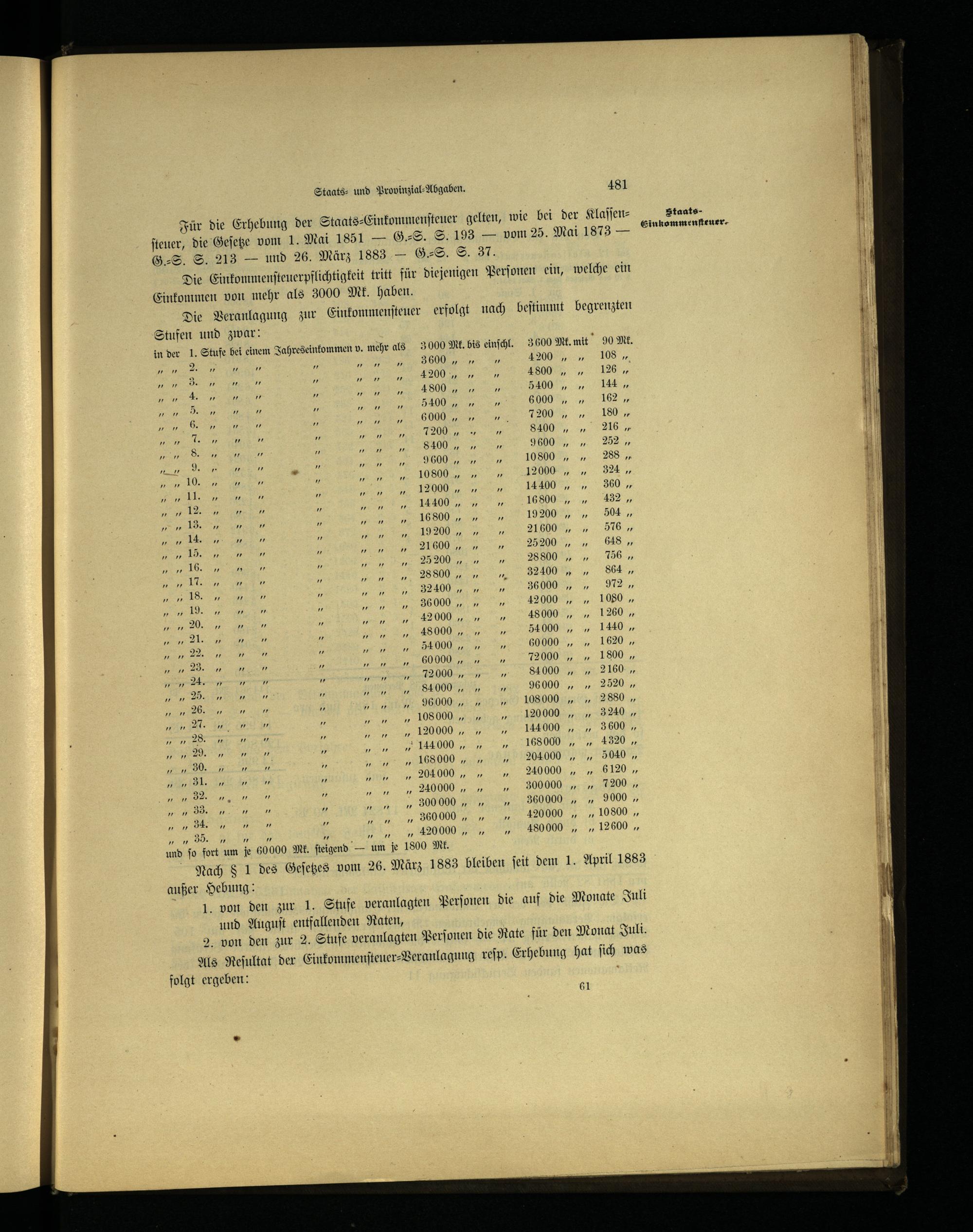 Nach§ 1 des Geſetzes vom 26. März 1883 bleiben ſeit dem 1. April 1883 außer Hebung: 1. von den zur 1. Stufe veranlagten Perſonen die auf die Monate Juli