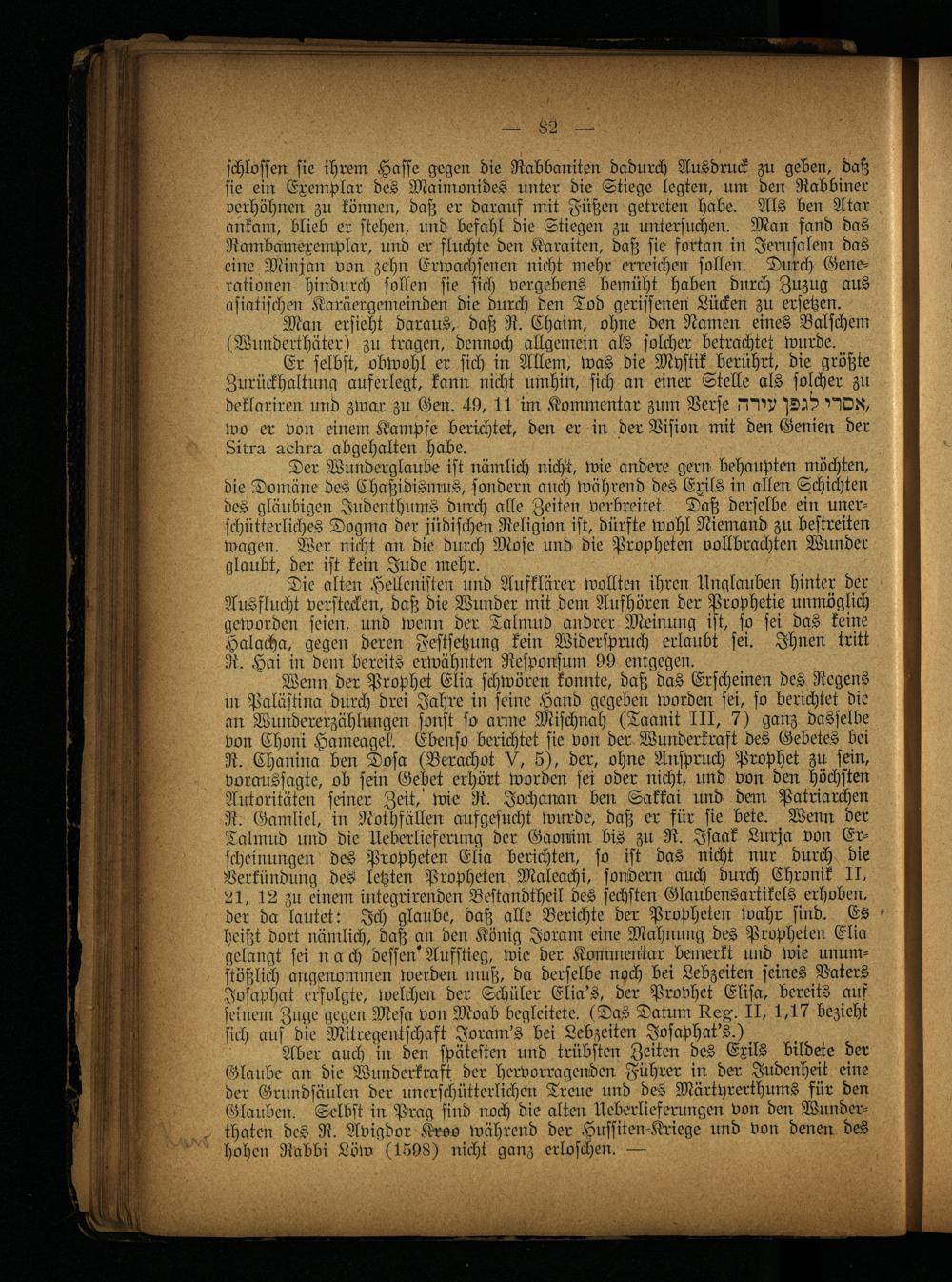 Die alten Hellenisten und Aufklärer wollten ihren Unglauben hinter der Ausflucht verstecken, daß die Wunder mit dem Aufhören der Prophetie unmöglich geworden seien, und wenn der Talmud andrer Meinung ist, so sei das keine Halacha, gegen deren Festsetzung kein Widerspruch erlaubt sei. Ihnen tritt R. Hai in dem bereits erwähnten Responsum 99 entgegen.